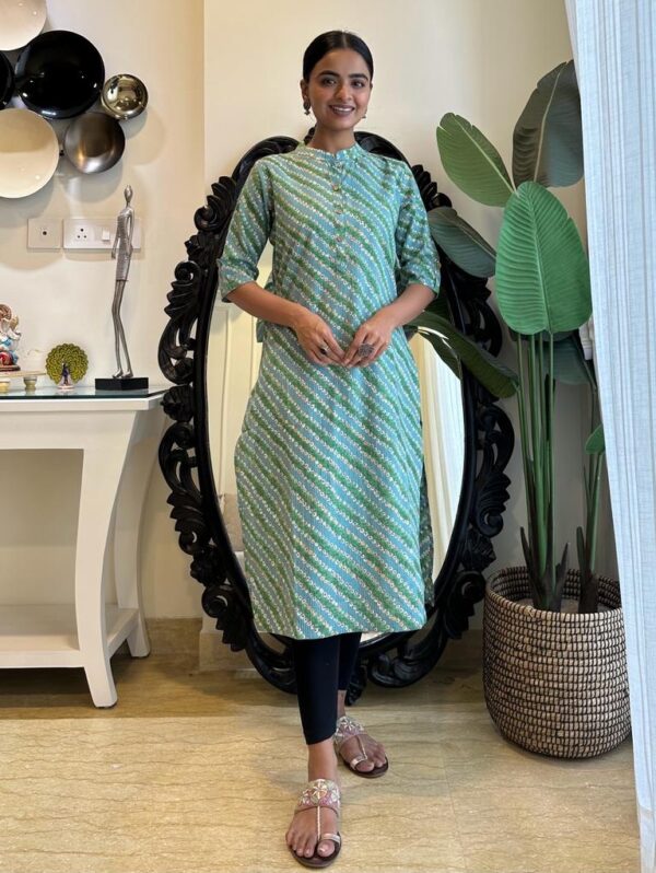 Weekend Cotton Kurta- Blue Green Bandhej