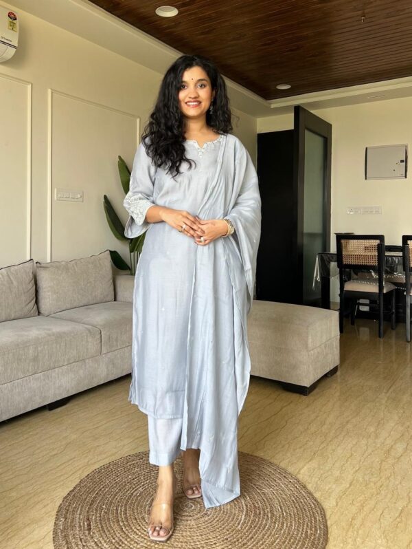 Shavya Mul Chanderi Embroidered Set- Soft Grey