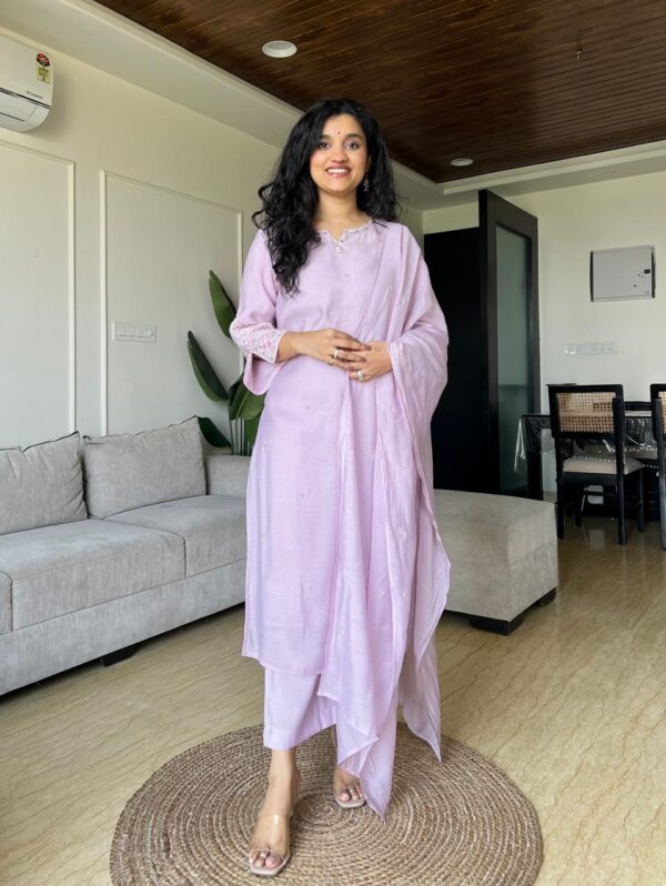Shavya Mul Chanderi Embroidered Set- Pastel Purple