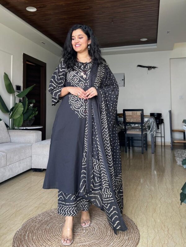 Meesha Bandhej Cotton Set- Black