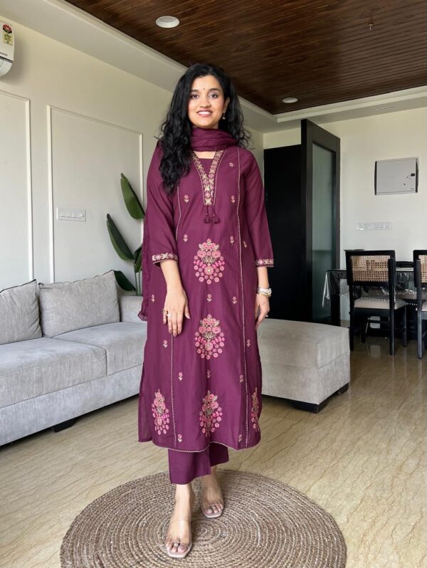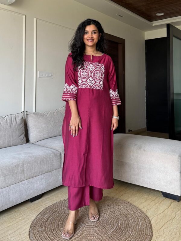 Neer Embroidered Straight Set- Maroon