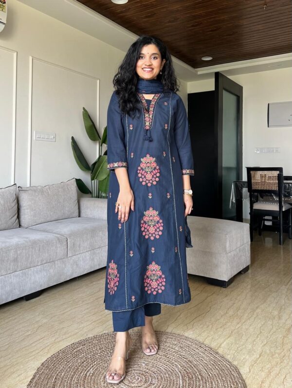 Neer Embroidered Straight Set- Teal Blue