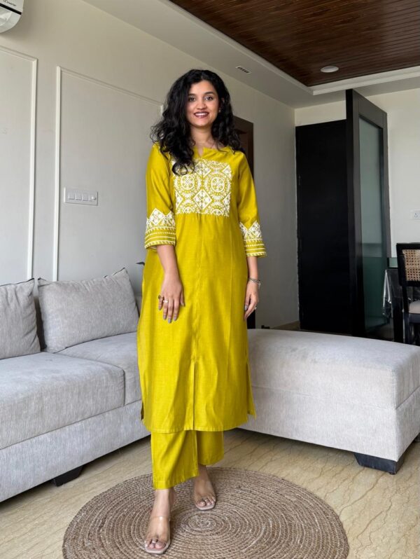 Neer Embroidered Straight Set- Yellow