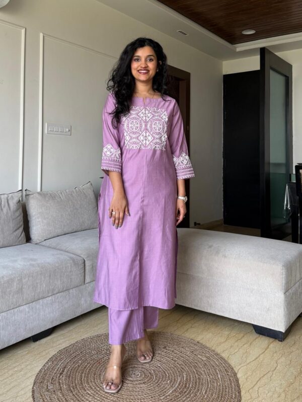 Neer Embroidered Straight Set- Light Purple