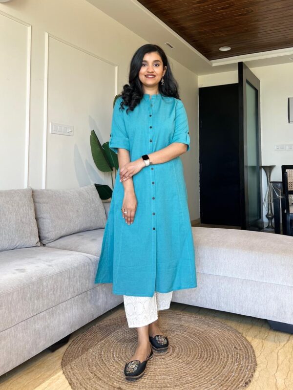 ₹950.00A-line Rayon Kurta- Sky Blue Batik