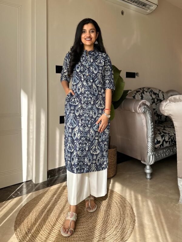 Weekend Cotton Kurta- Indigo Pattern