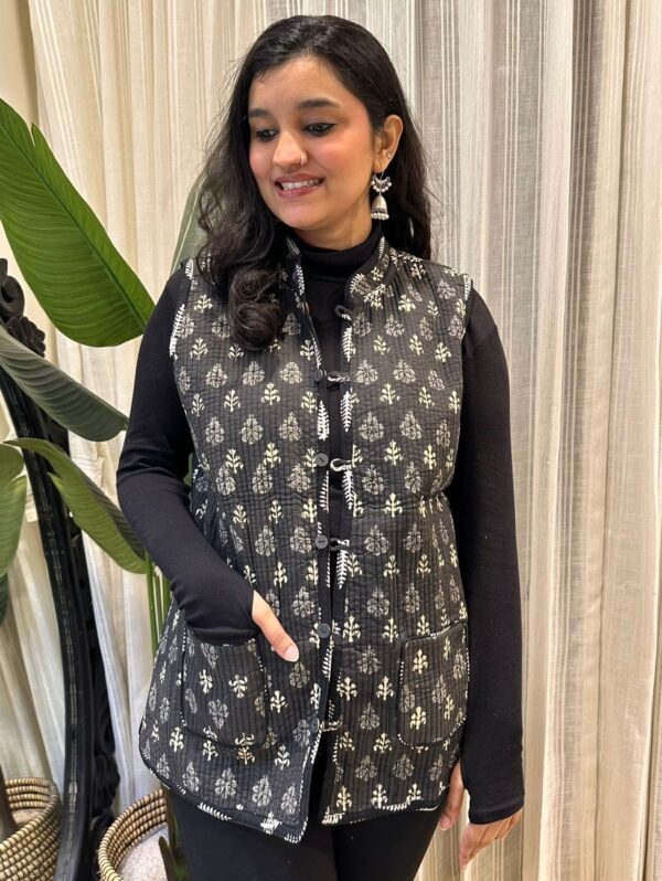 Reversible Quilted Sleeveless Jacket- Black Floral Jaal