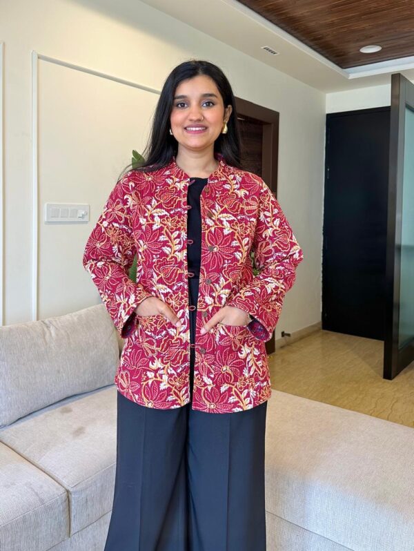 Reversible Quilted Jacket- Maroon Floral Jaal