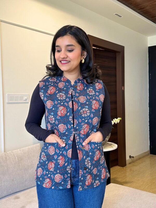 Reversible Quilted Sleeveless Jacket- Indigo Boota