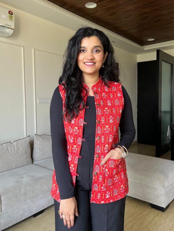 Reversible Quilted Sleeveless Jacket- Red Love booti