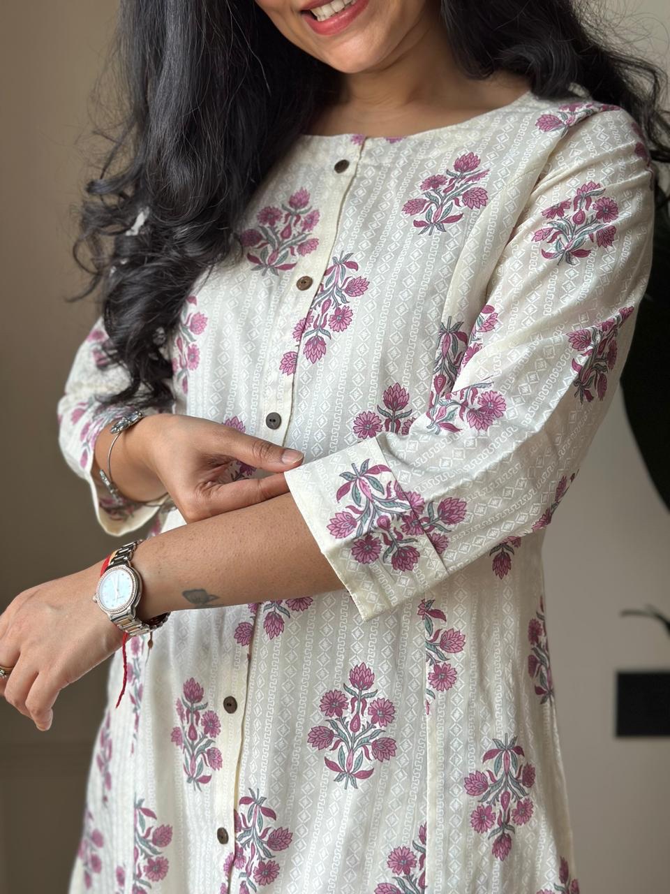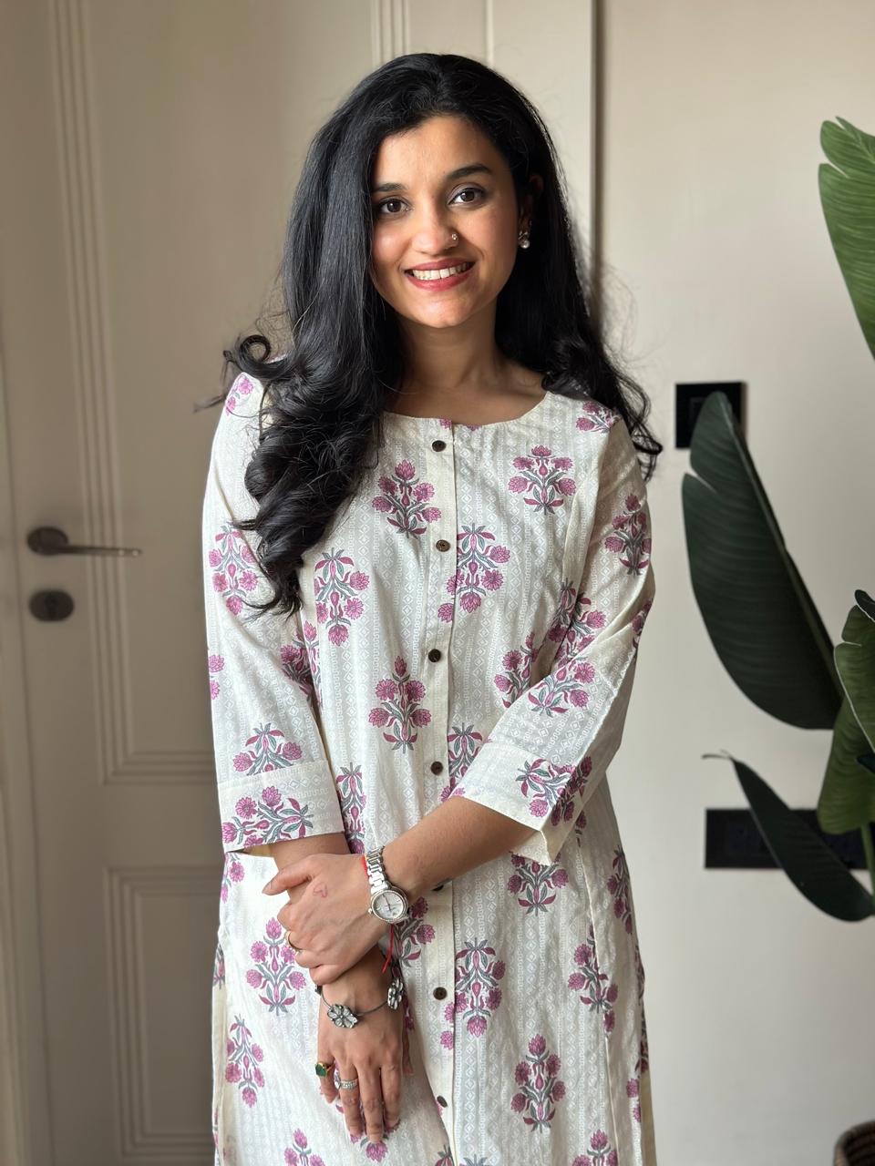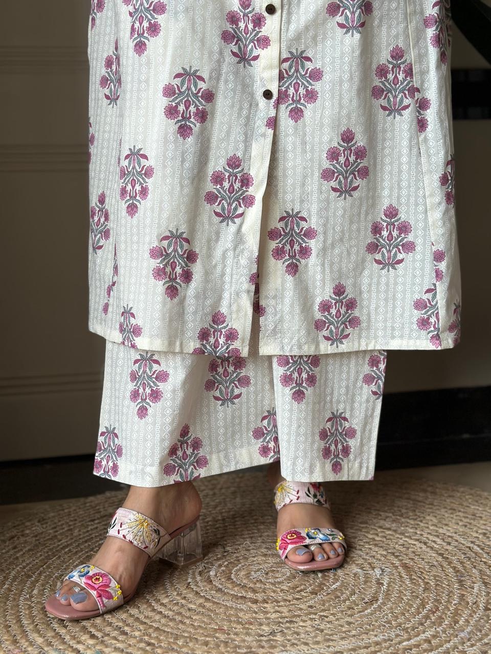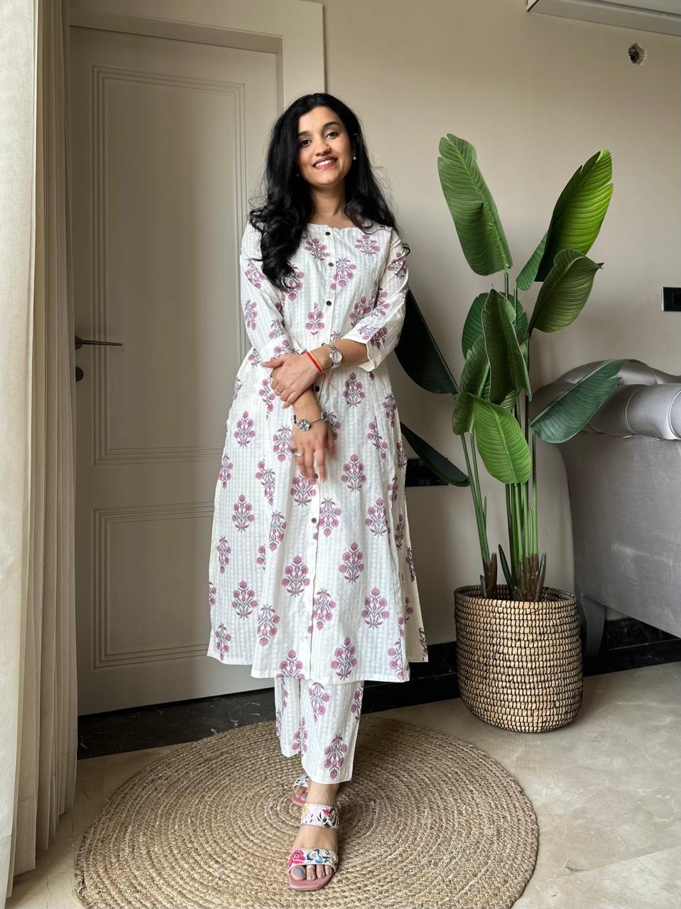 Amayra A-line Cotton Pant Set- Pink Booti