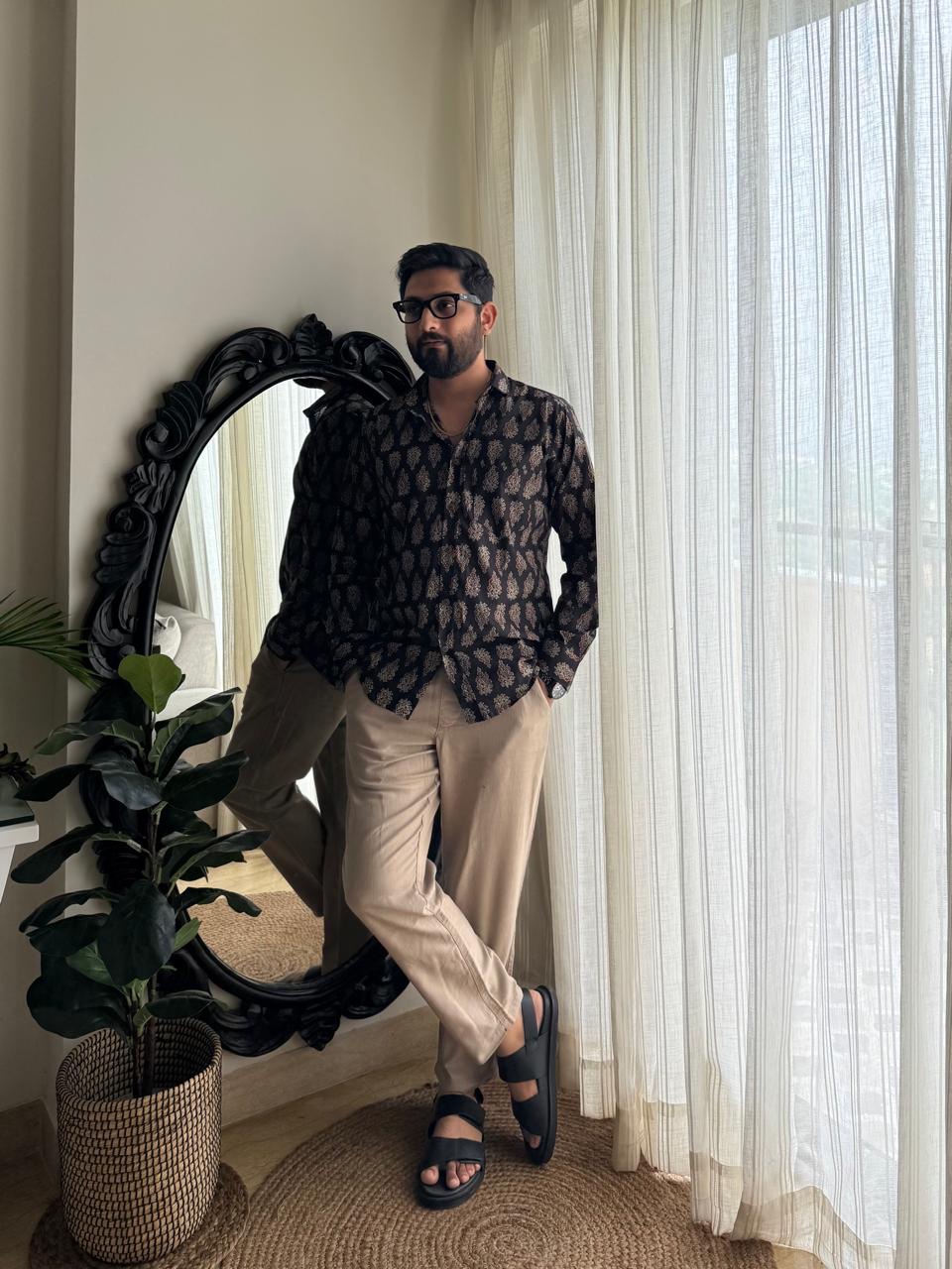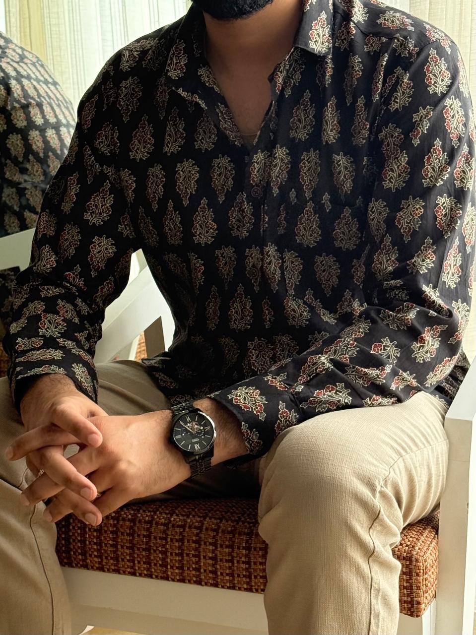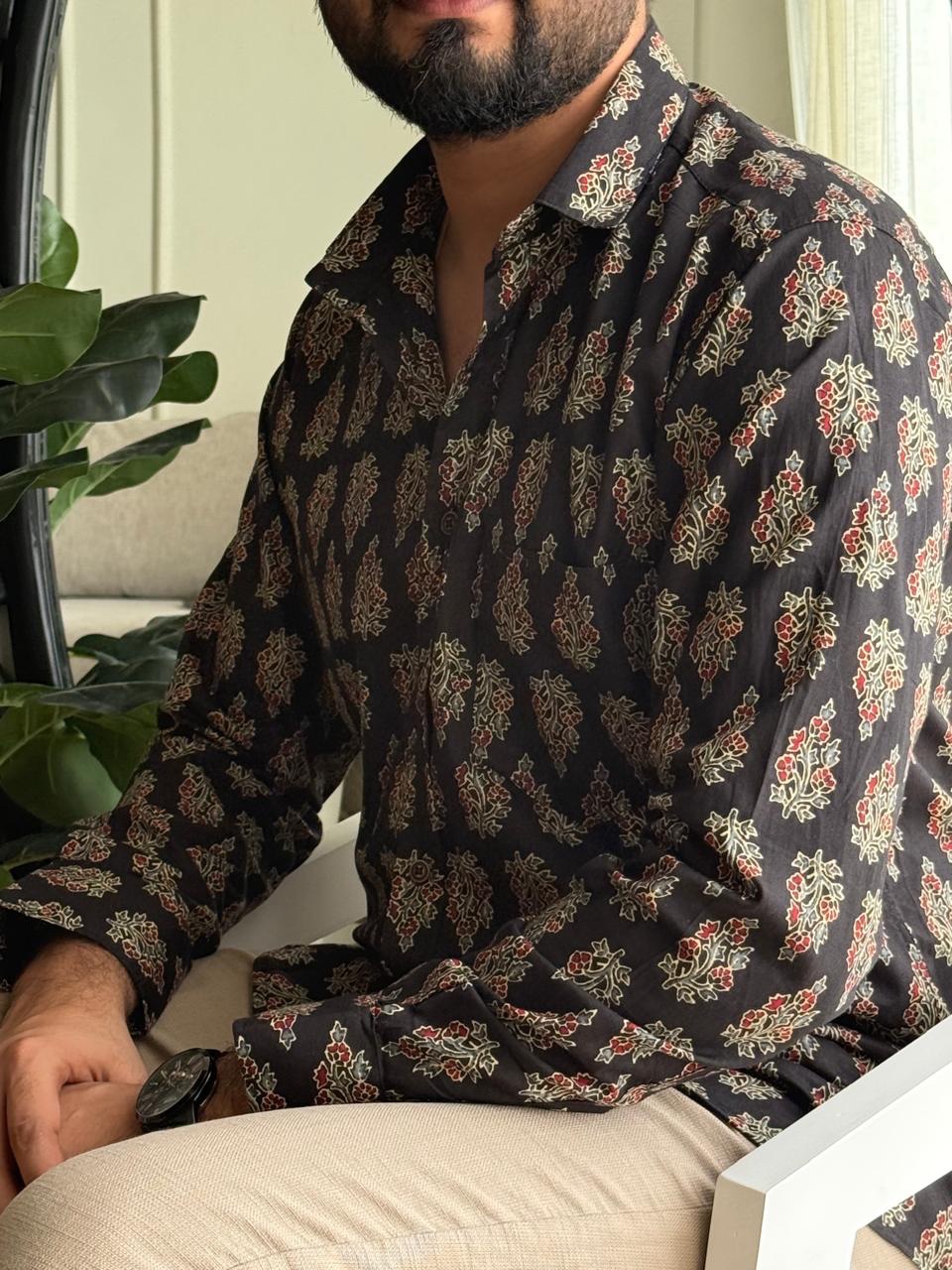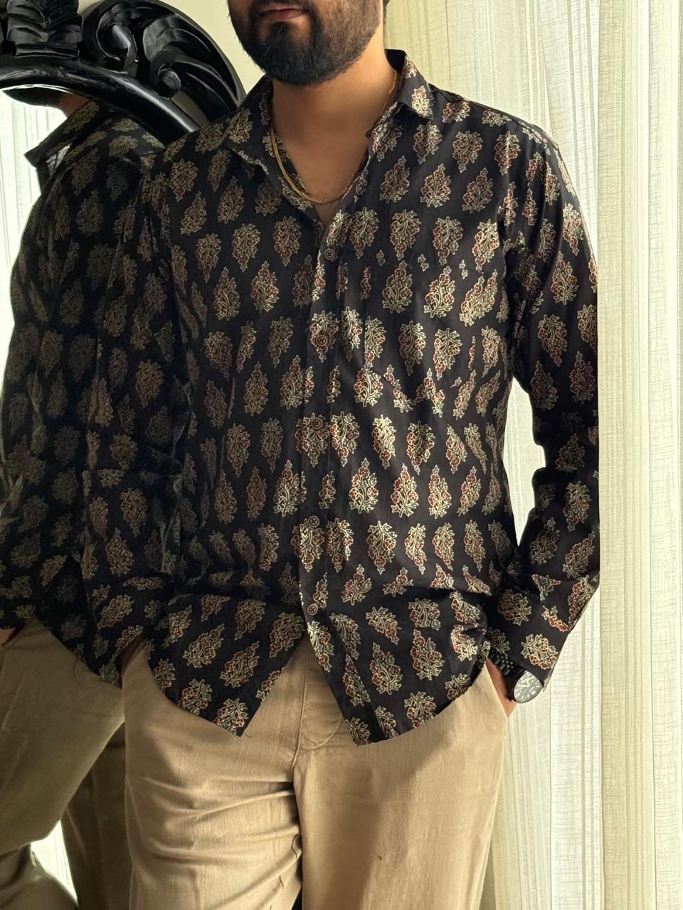 Cotton Men’s Full Sleeves Shirt- Black Boota