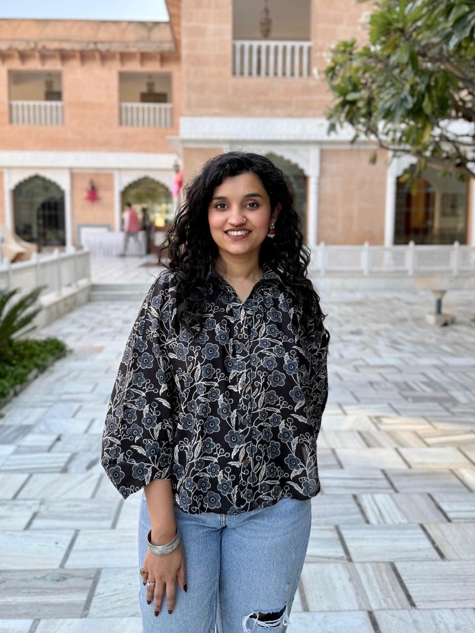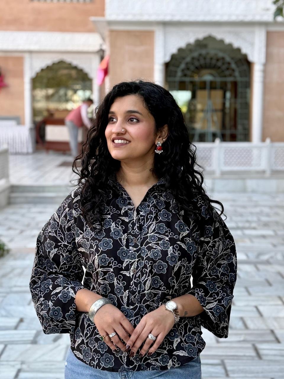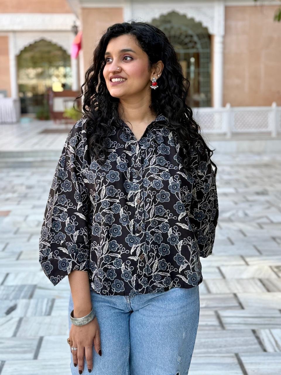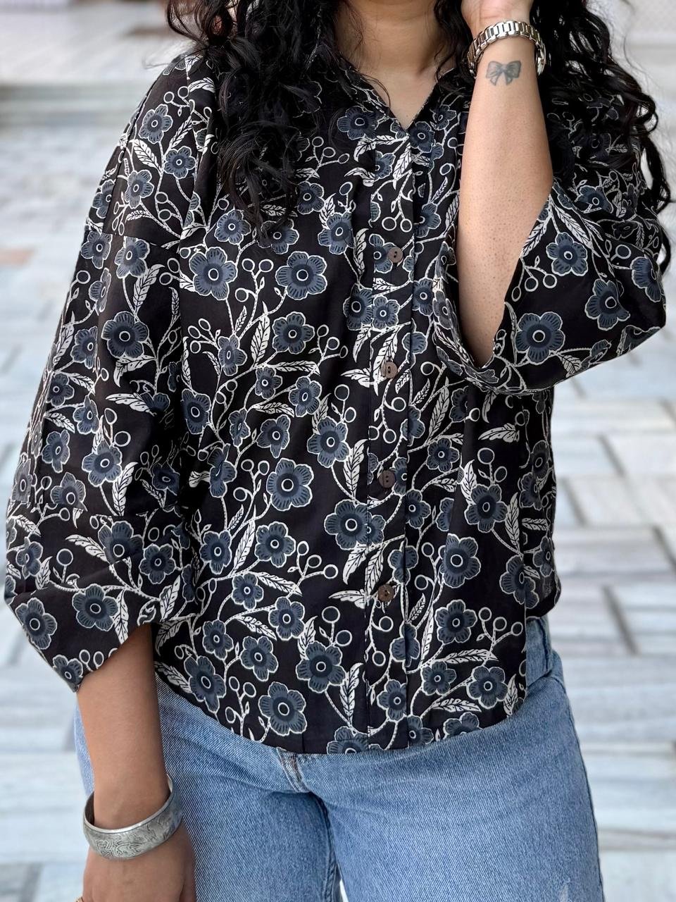 Krusha Short Cotton Shirt- Black Blue Floral Jaal