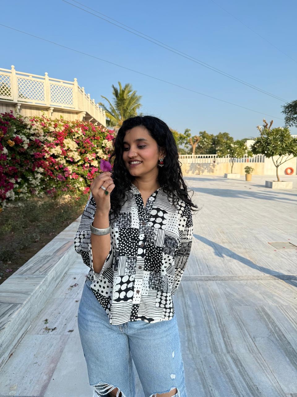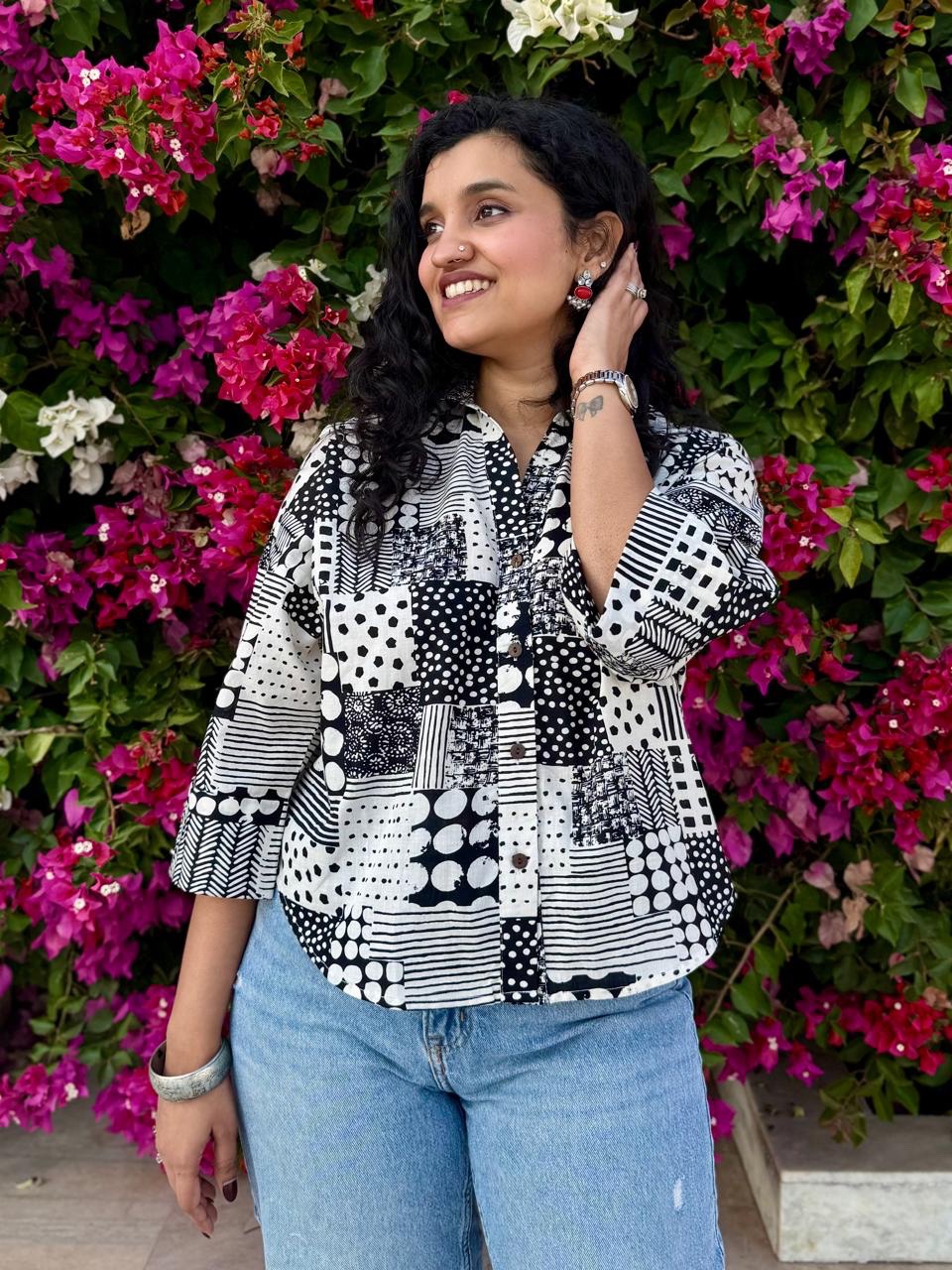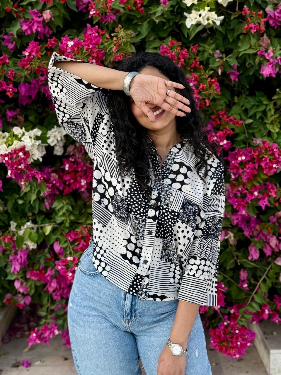 Krusha Short Cotton Shirt- Black & White Mix