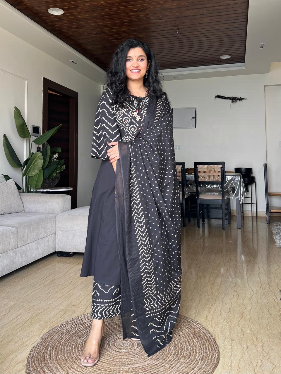 Meesha Bandhej Cotton Set- Black