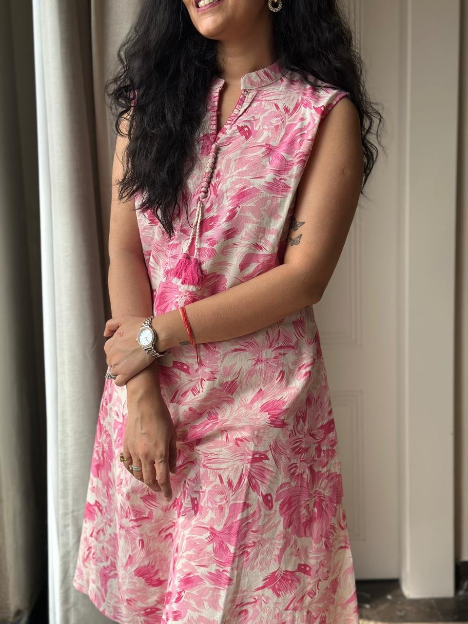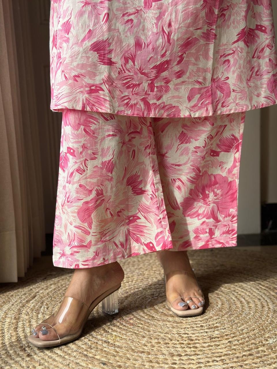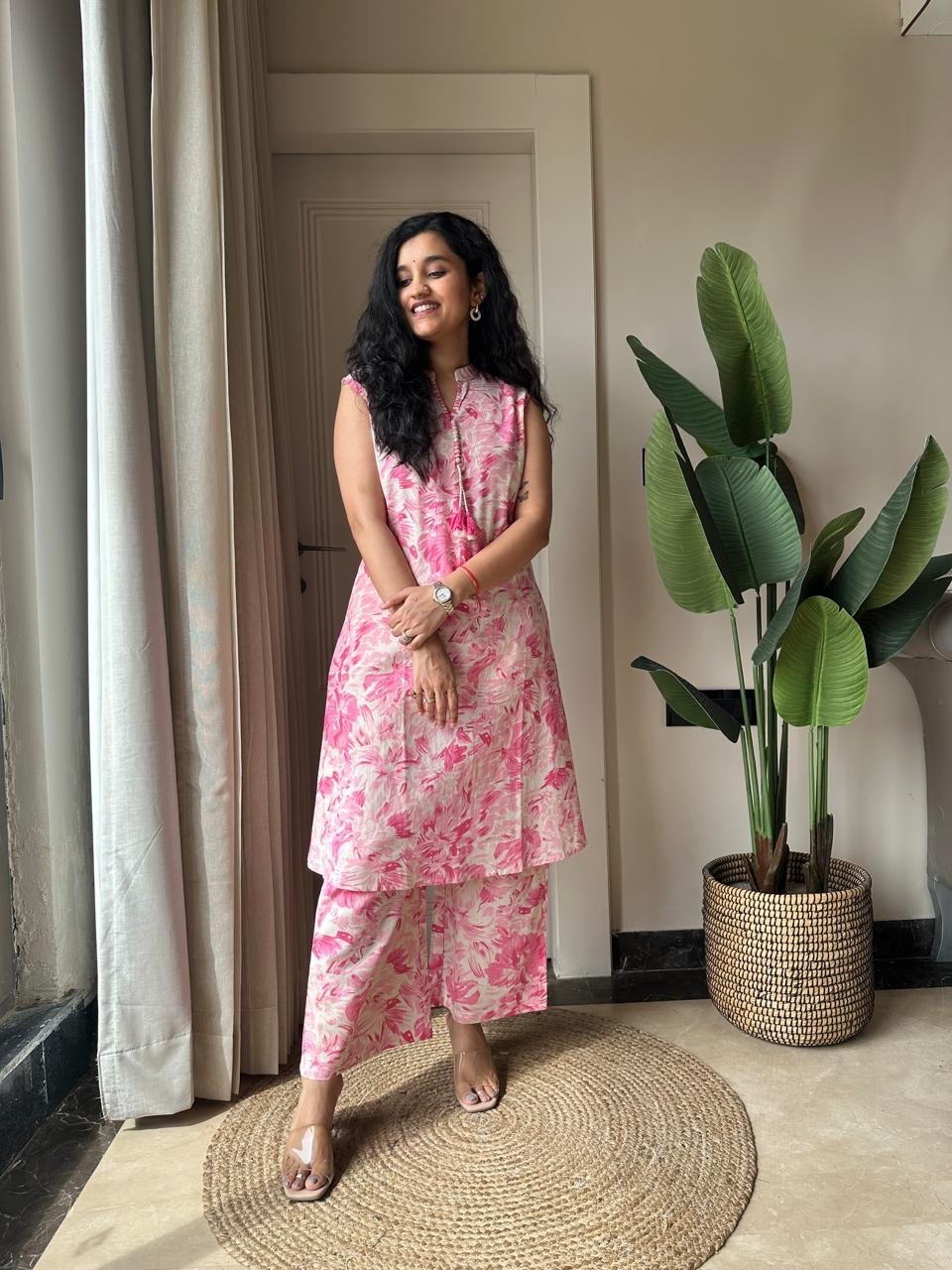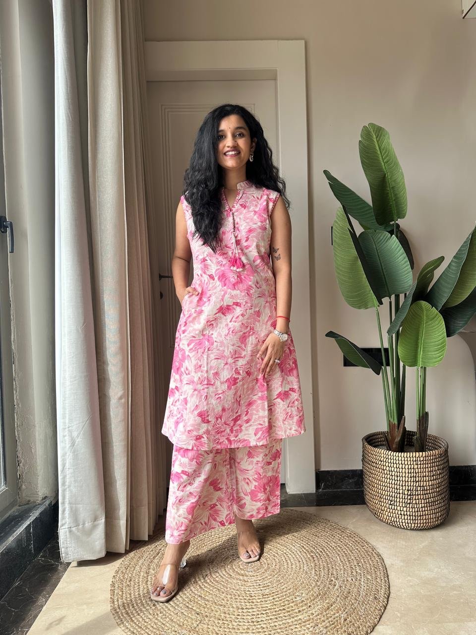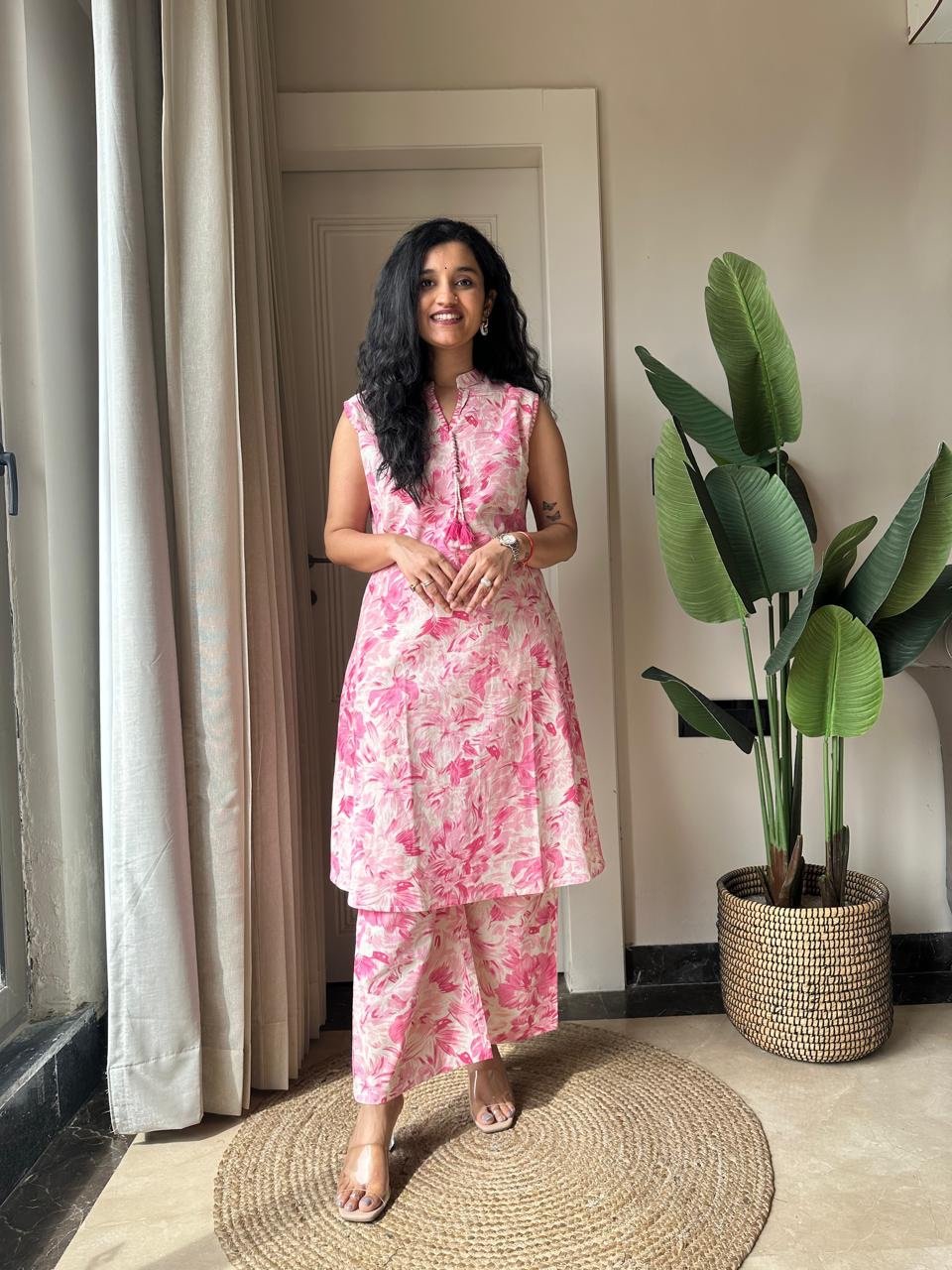 Pavitra Slub Cotton Coord Set- Pink Fizz