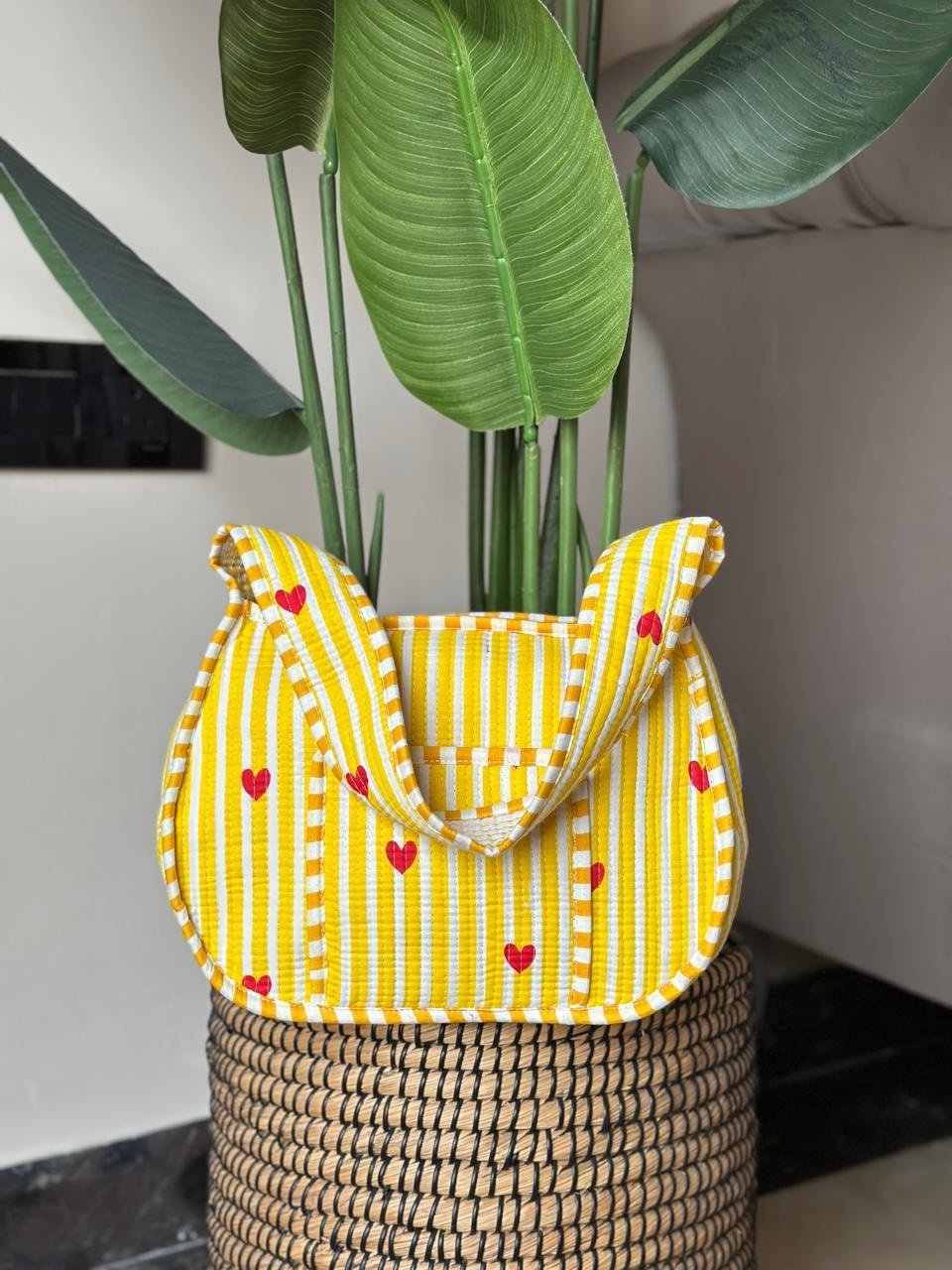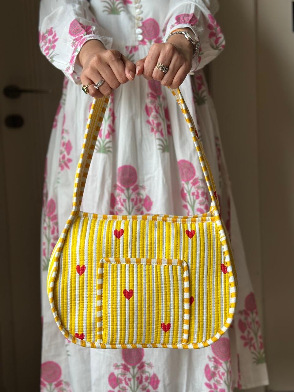 Quilted Shoulder Bag- Yellow Striped Love