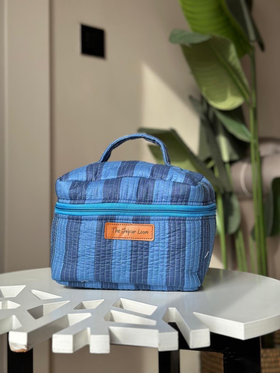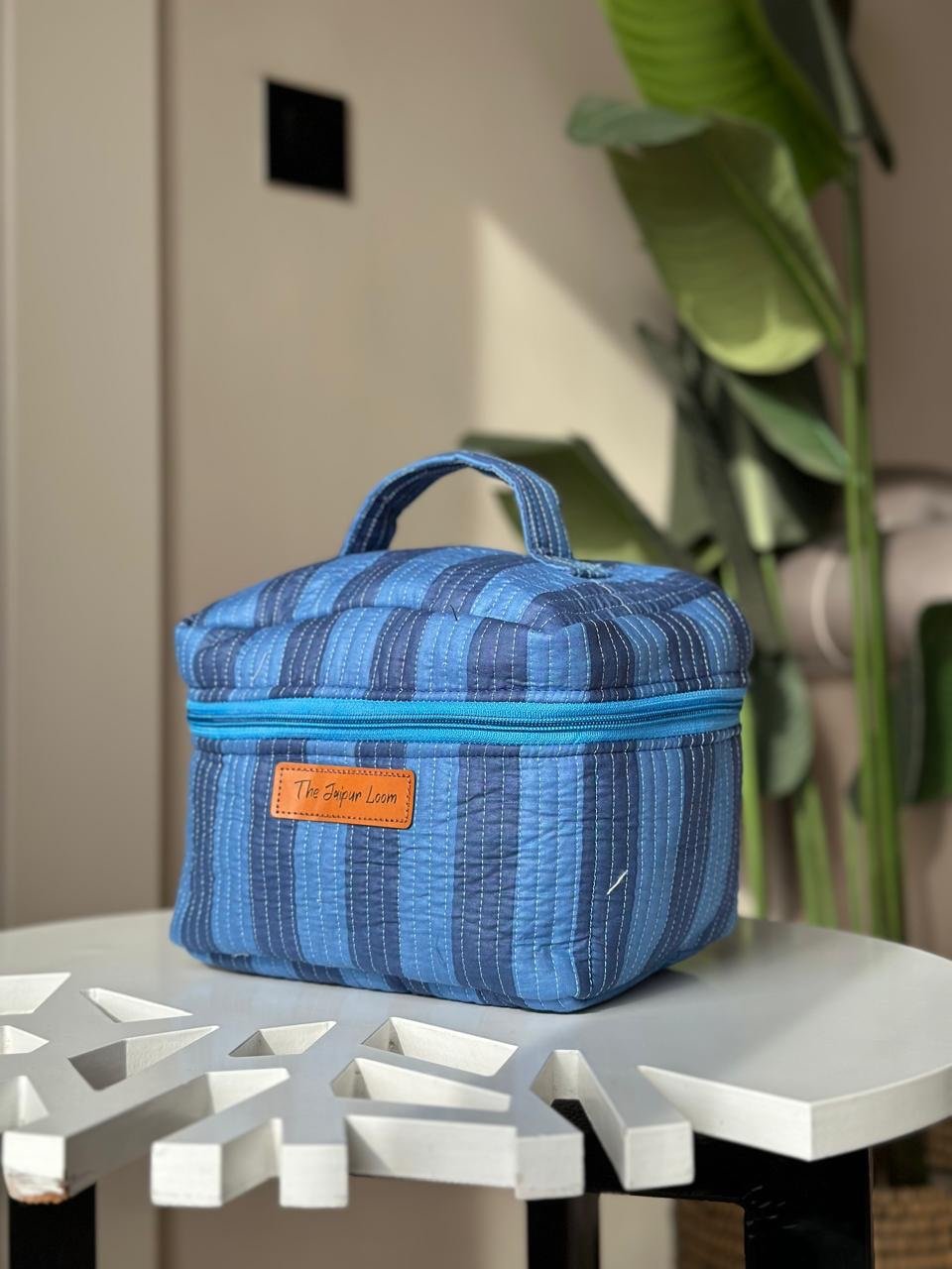 Quilted Vanity Bag- Light & Dark Blue Strips
