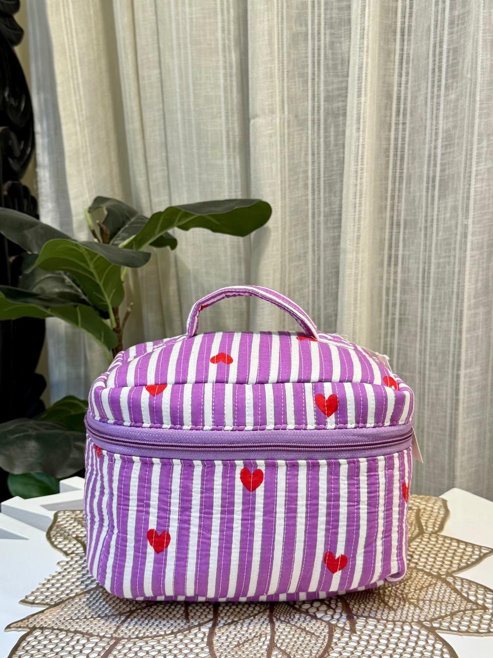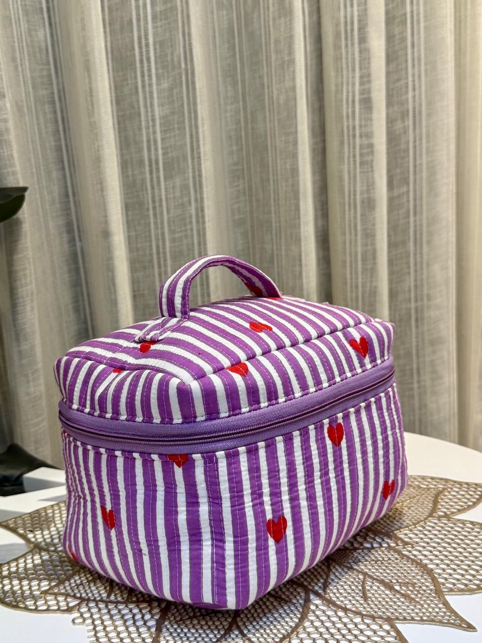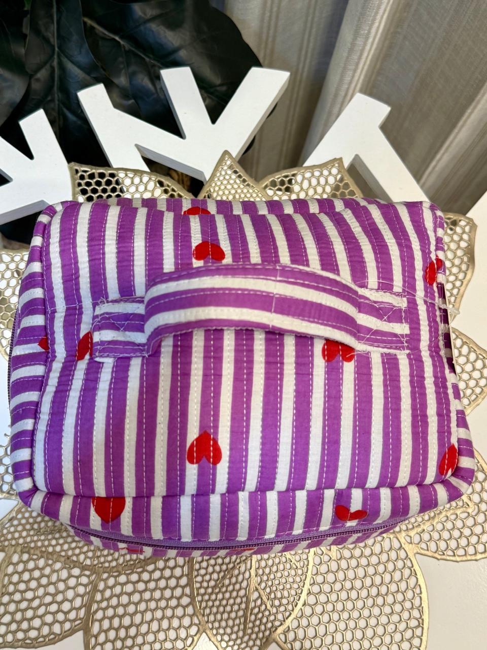 Quilted Vanity Bag- Purple Stripes