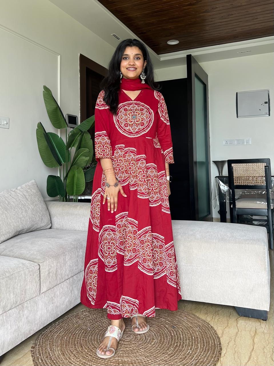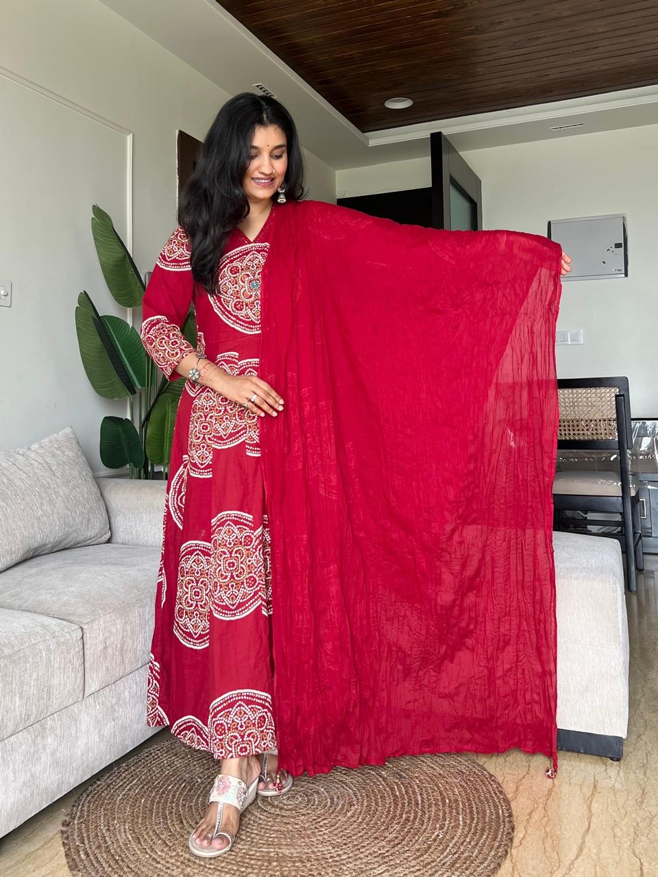Flattering Anarkali kurta & pants with beautiful crushed dupatta