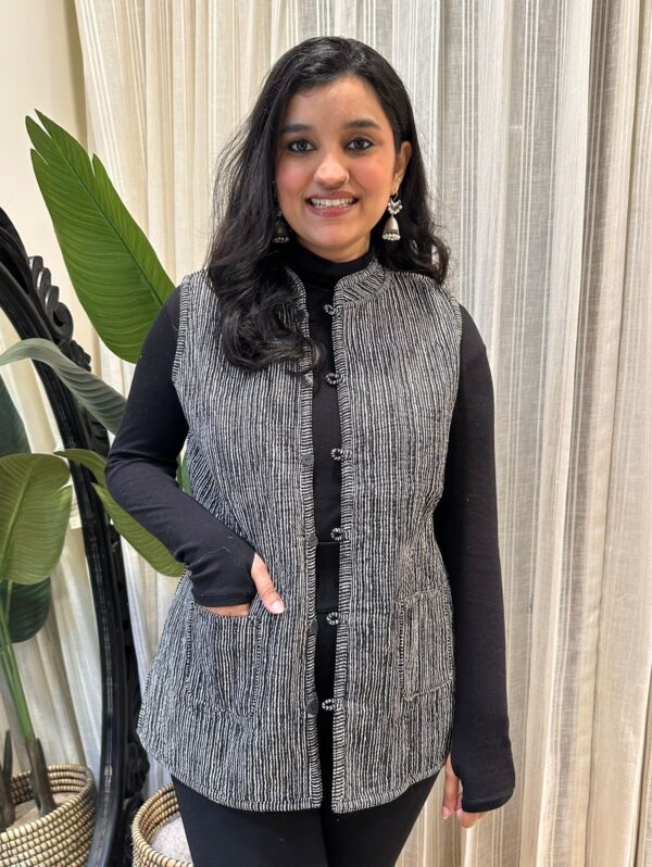 Reversible Quilted Sleeveless Jacket- Black Colorful Florals