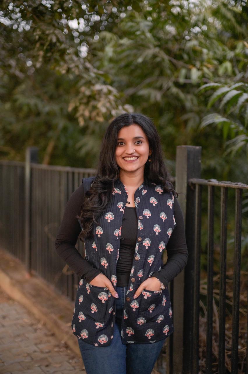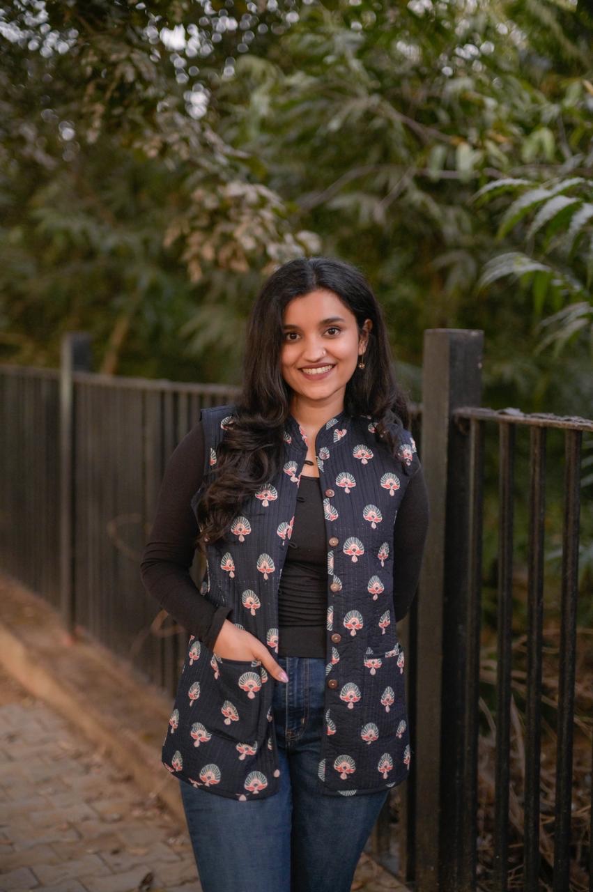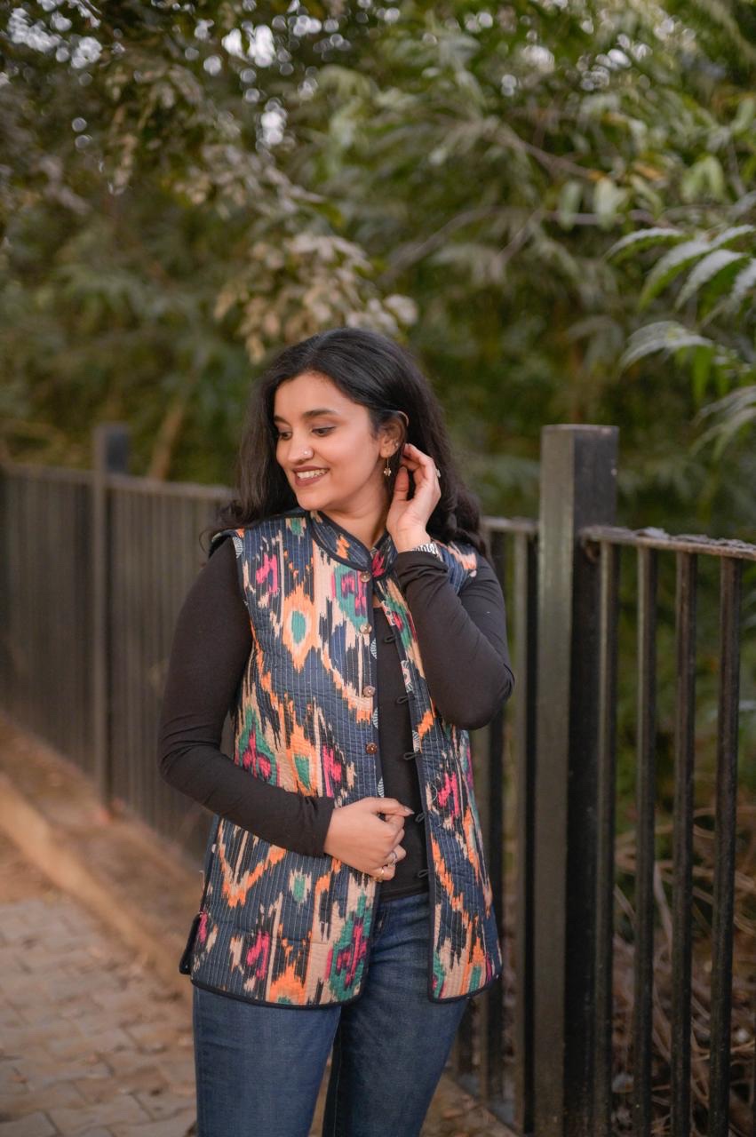 Reversible Quilted Sleeveless Jacket- Blue & mix boota