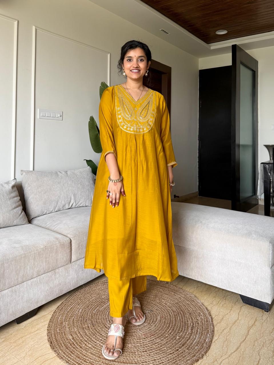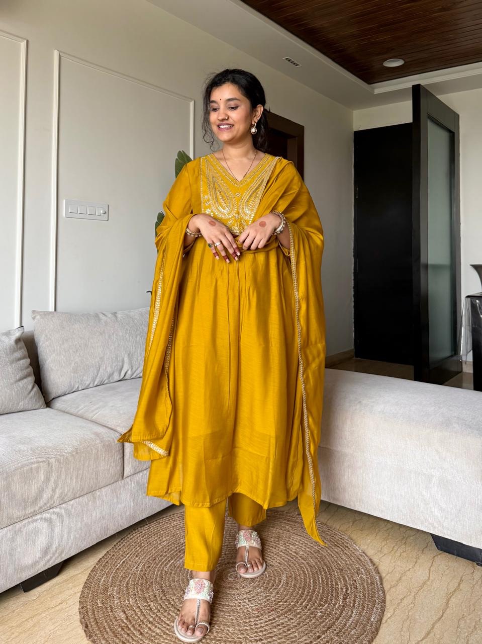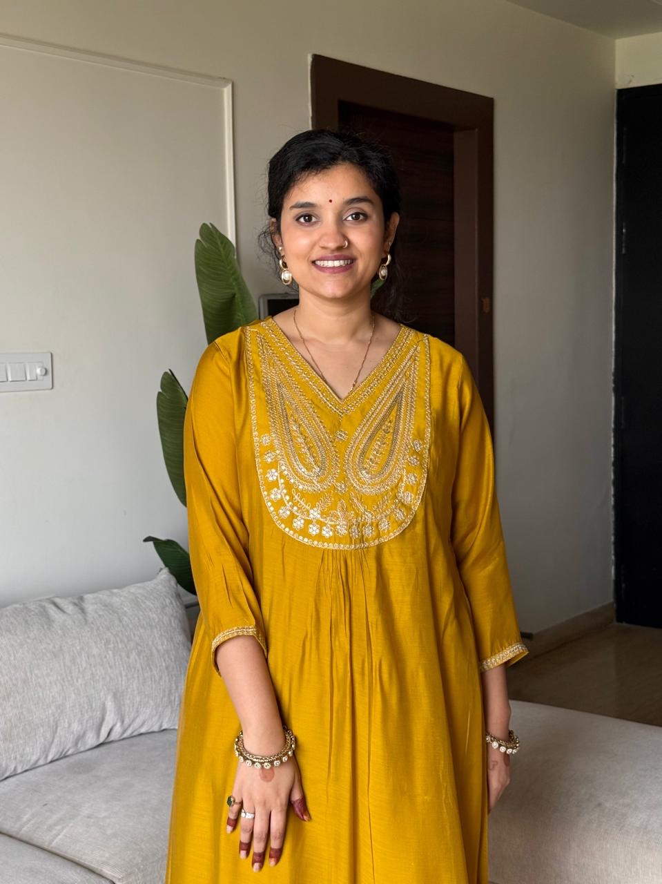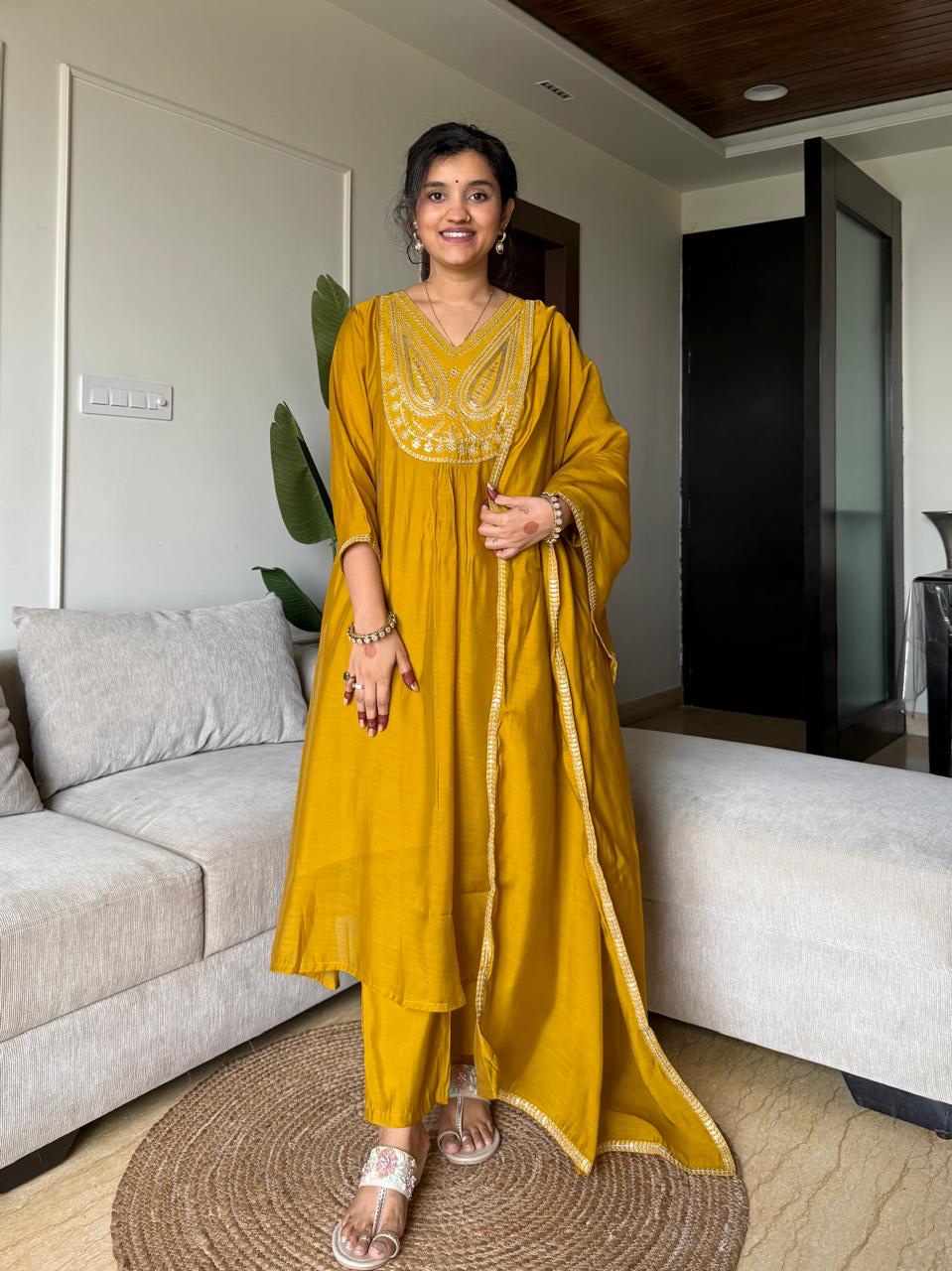 Saavra Mul Chanderi Luxe Set- Mustard