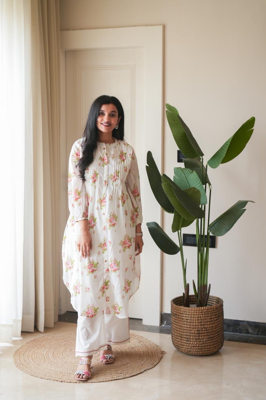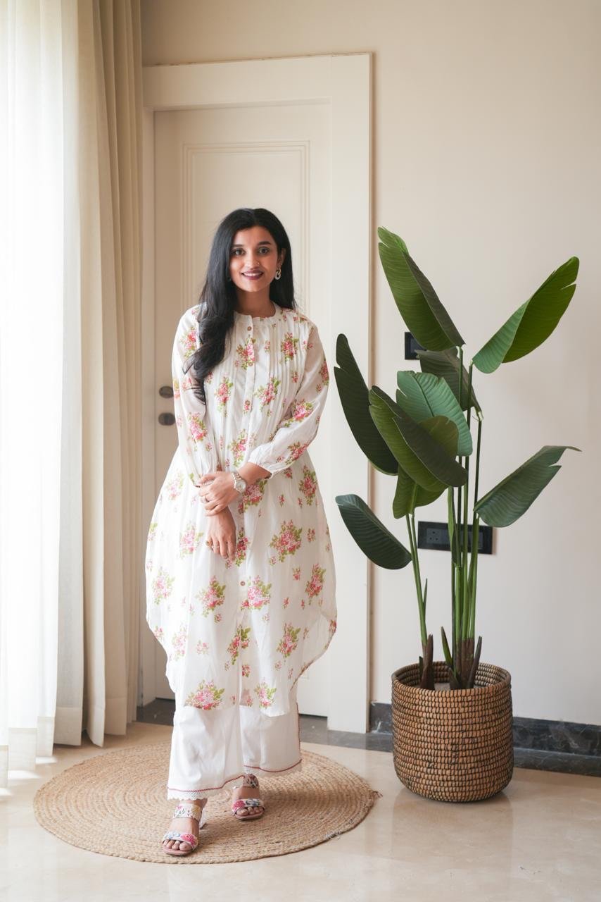 The Easy flowing A-line kurta and wide pants make an amazing style.