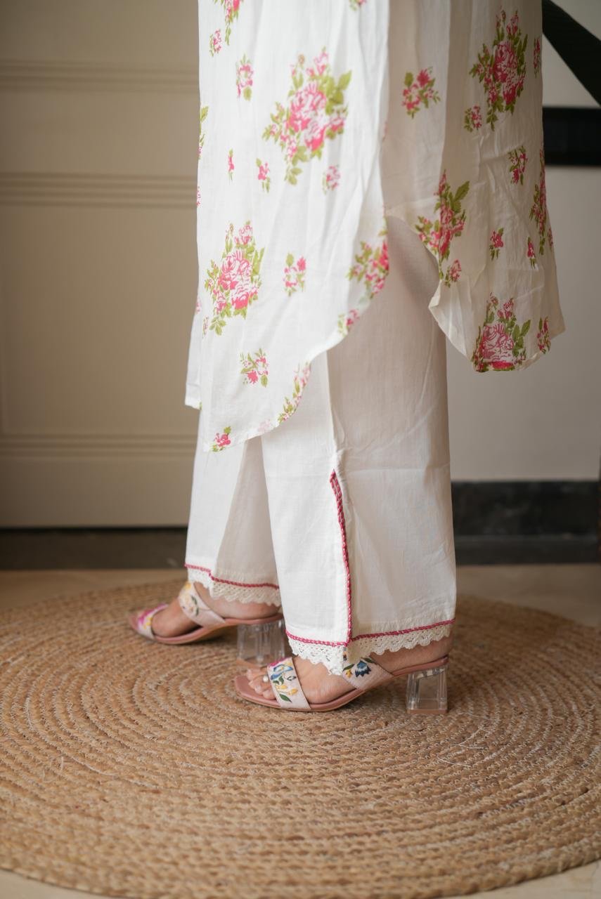 Samika White Mulmul Boota Set- Pink