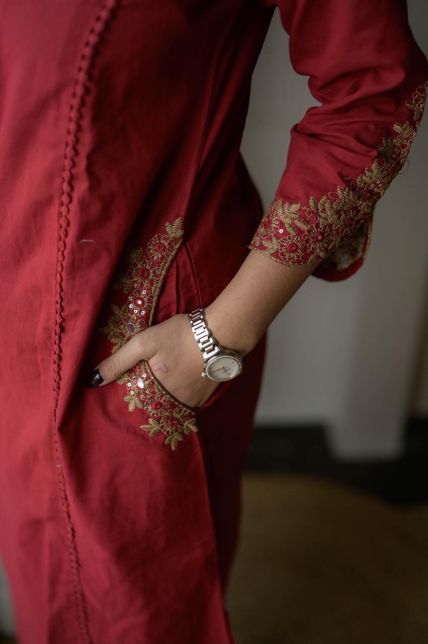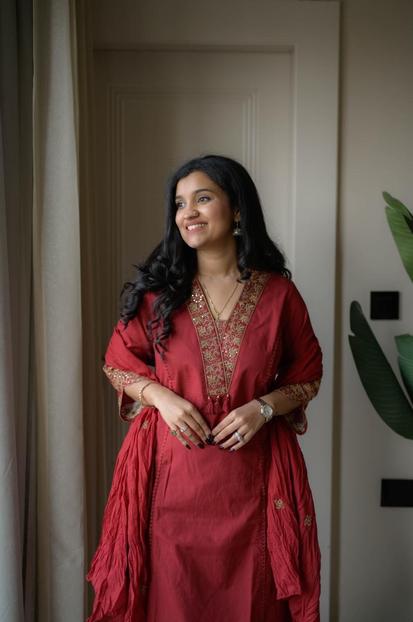 The beautiful combination of Embroidered Florals and crushed dupatta