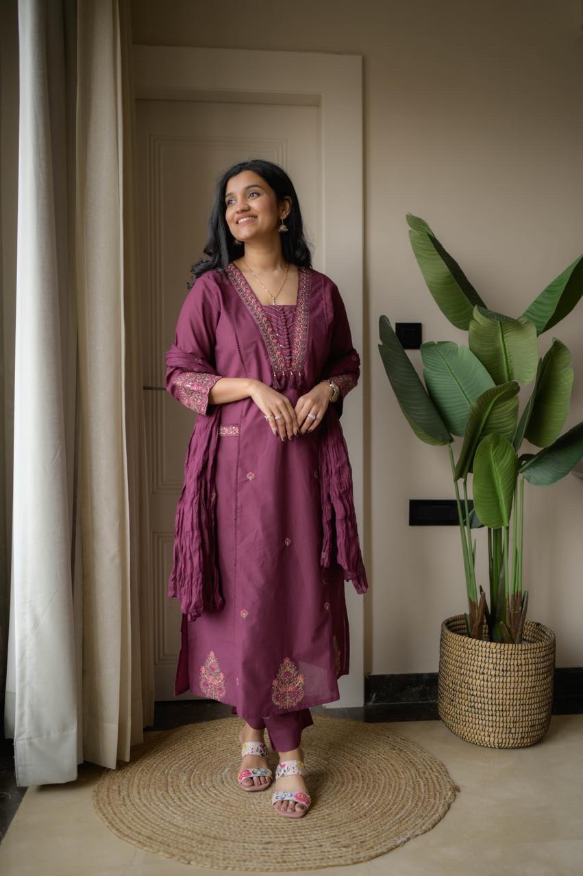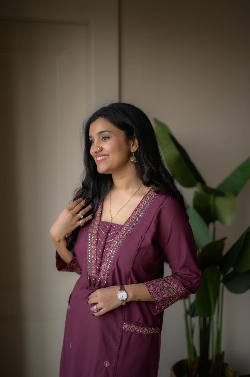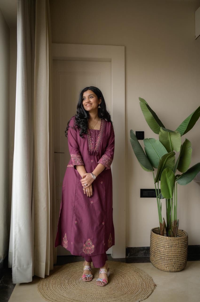 Shimmy Embroidered Premium Set- Wine