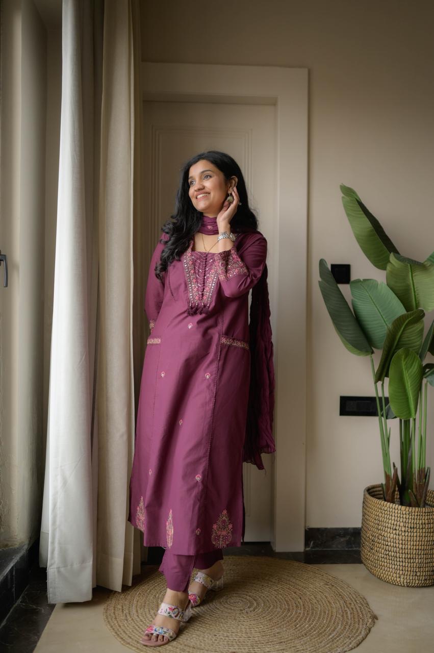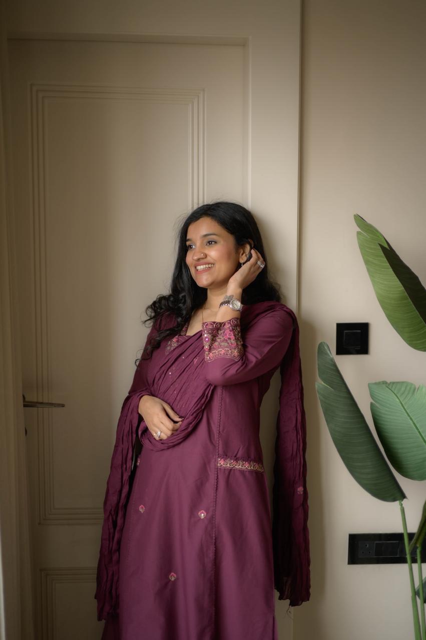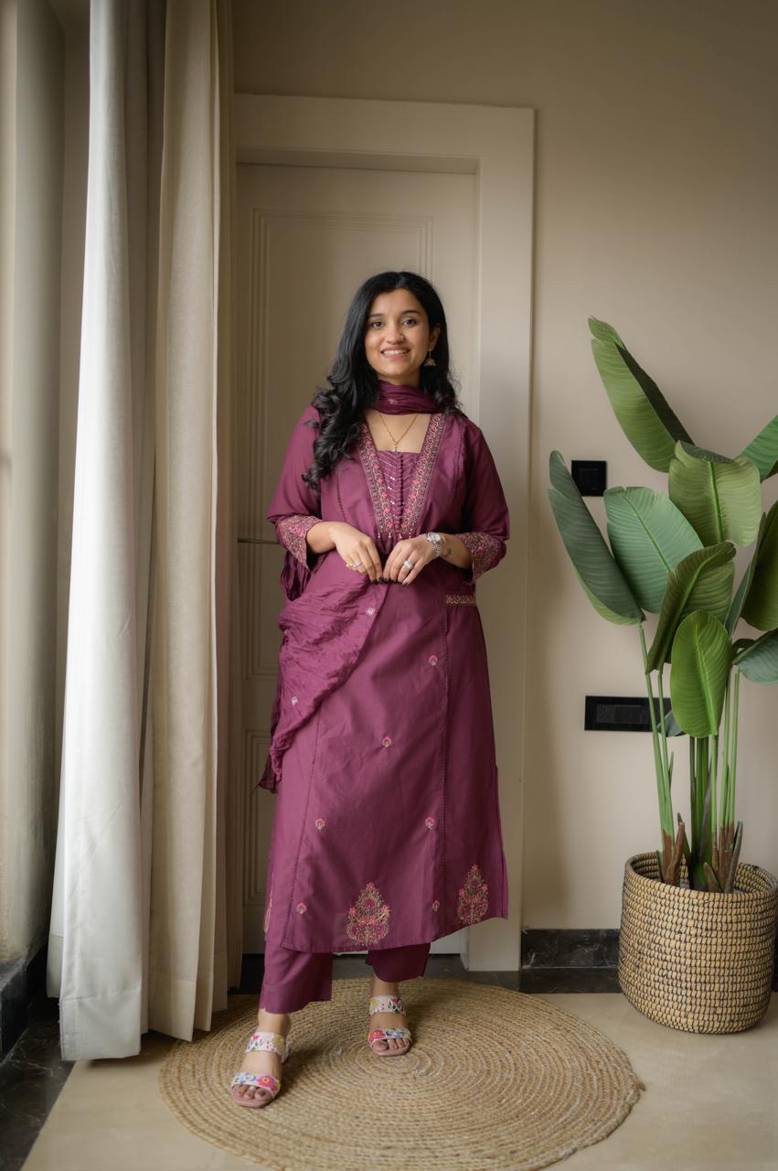 Shimmy Embroidered Premium Set- Wine