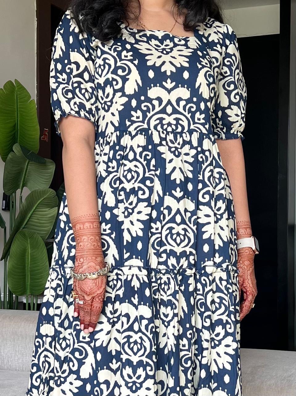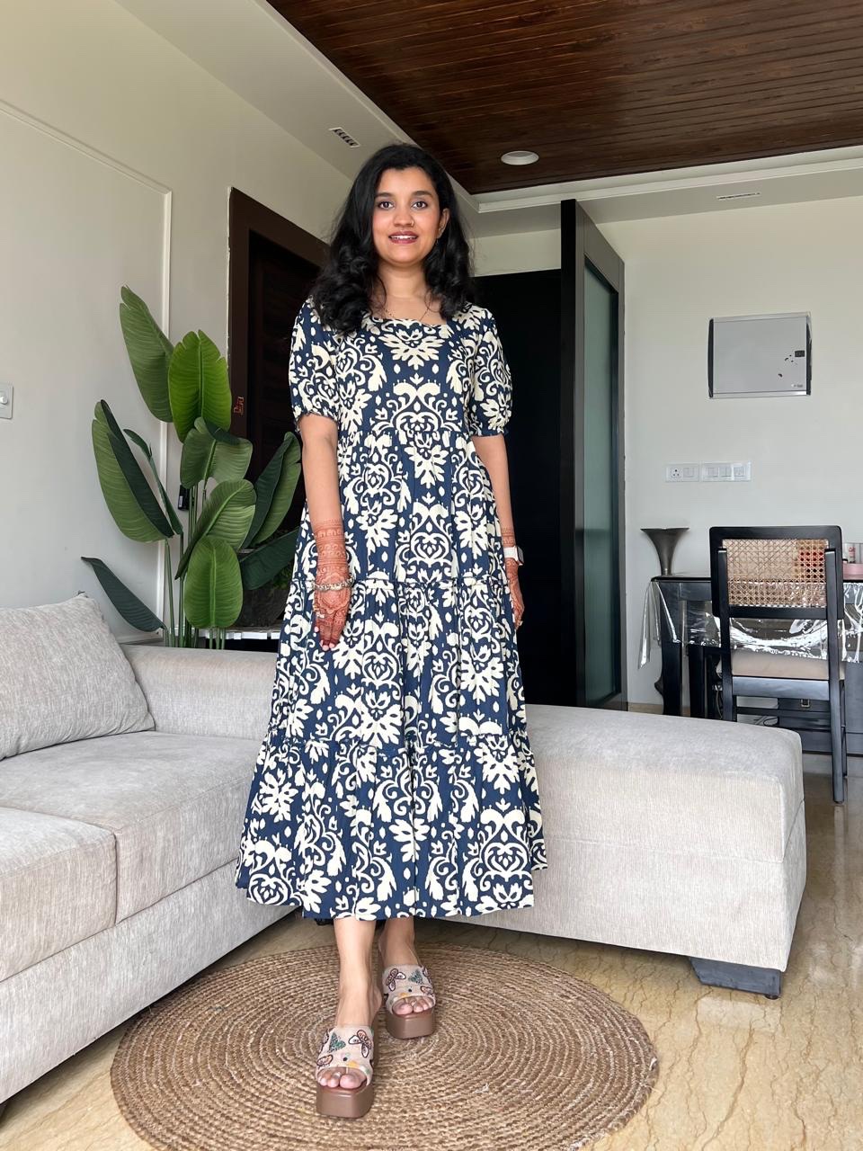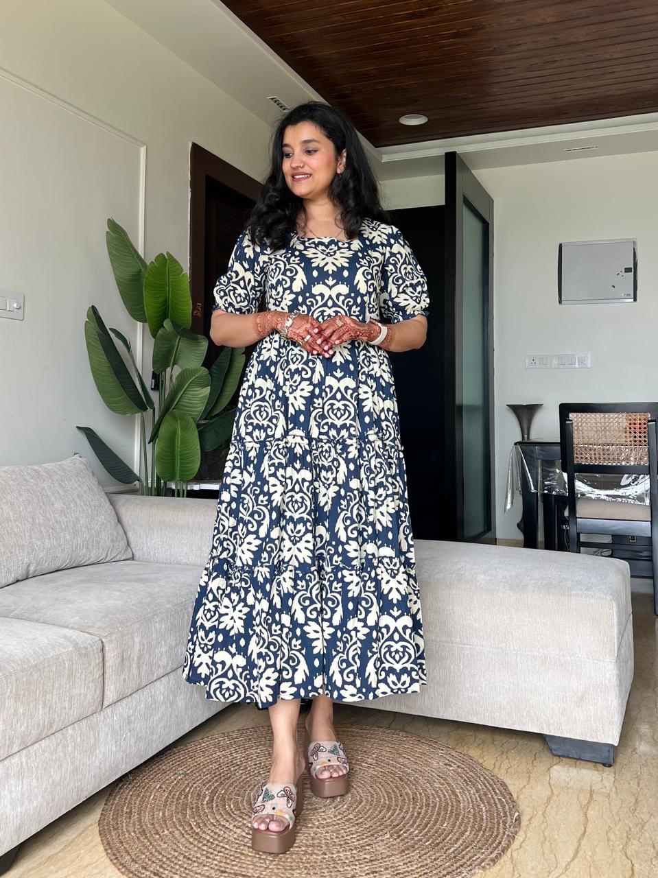 Tanvi Tiered Maxi Dress- Blue Pattern