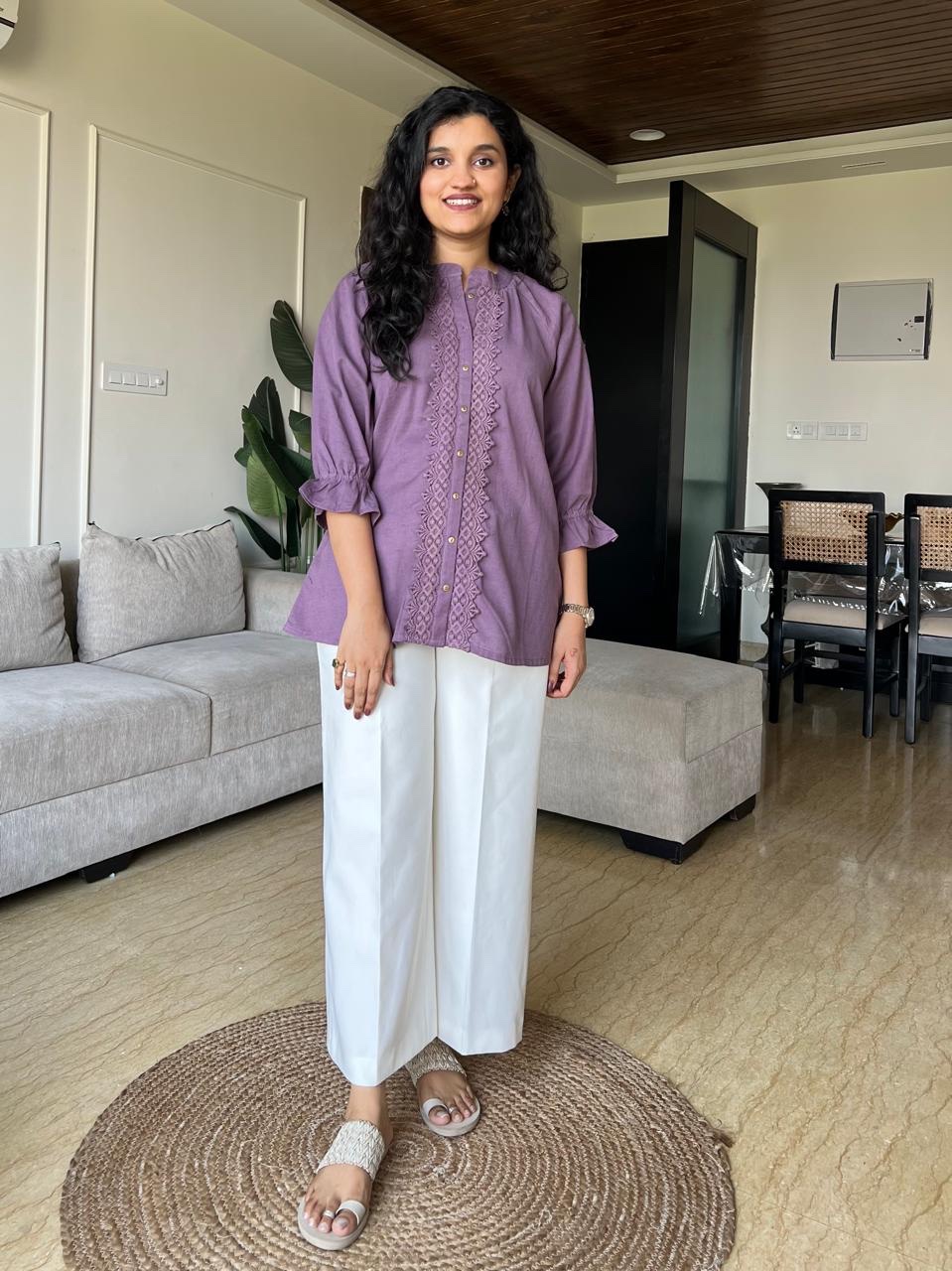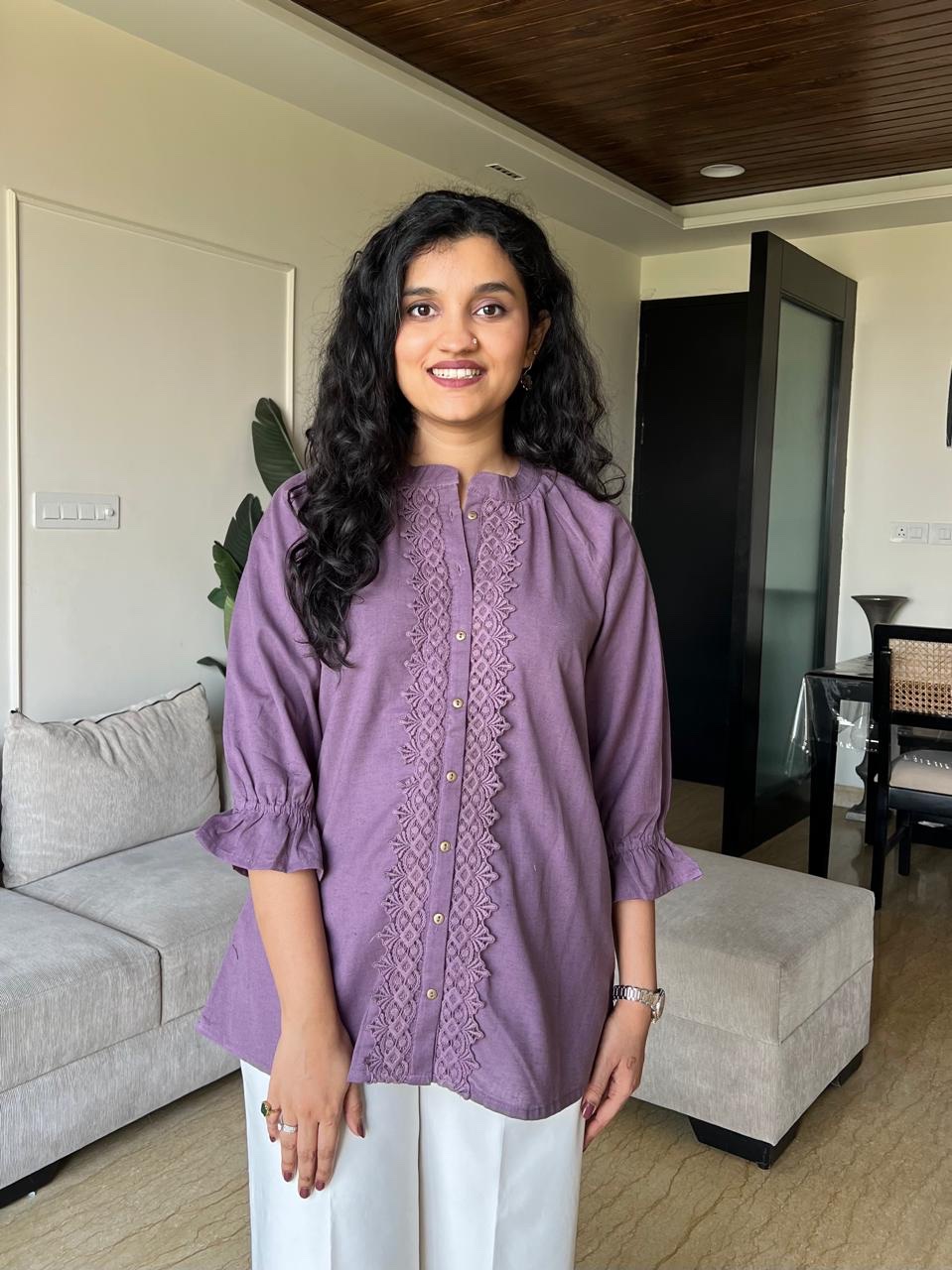 Tisha Cotton Embroidered Top- Purple