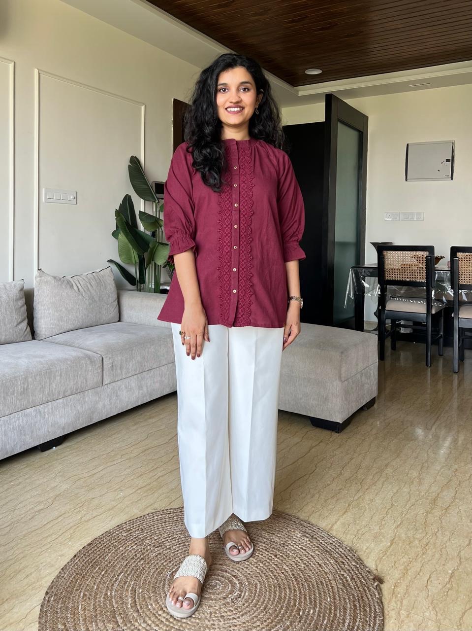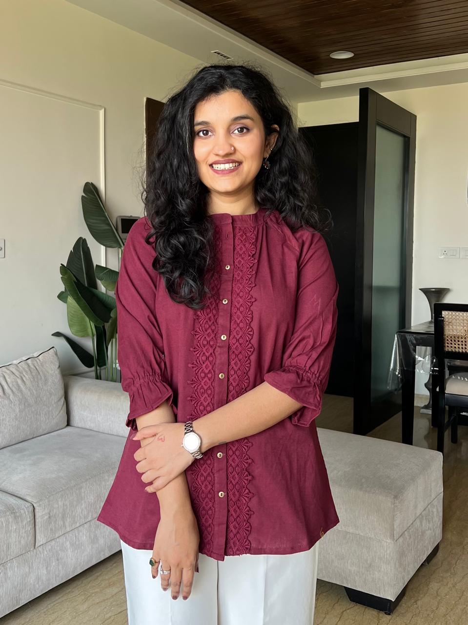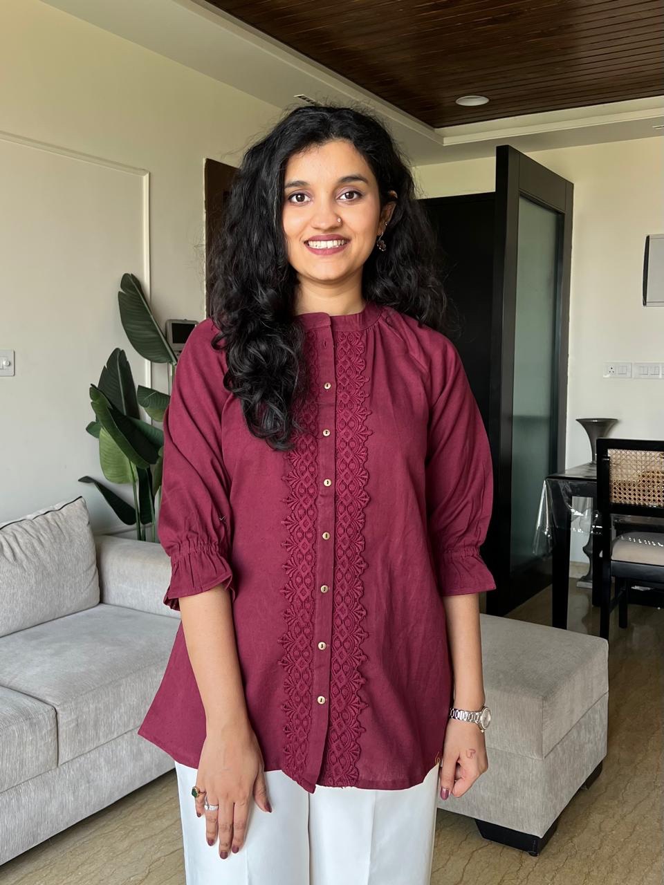 Tisha Cotton Statement Top- Maroon
