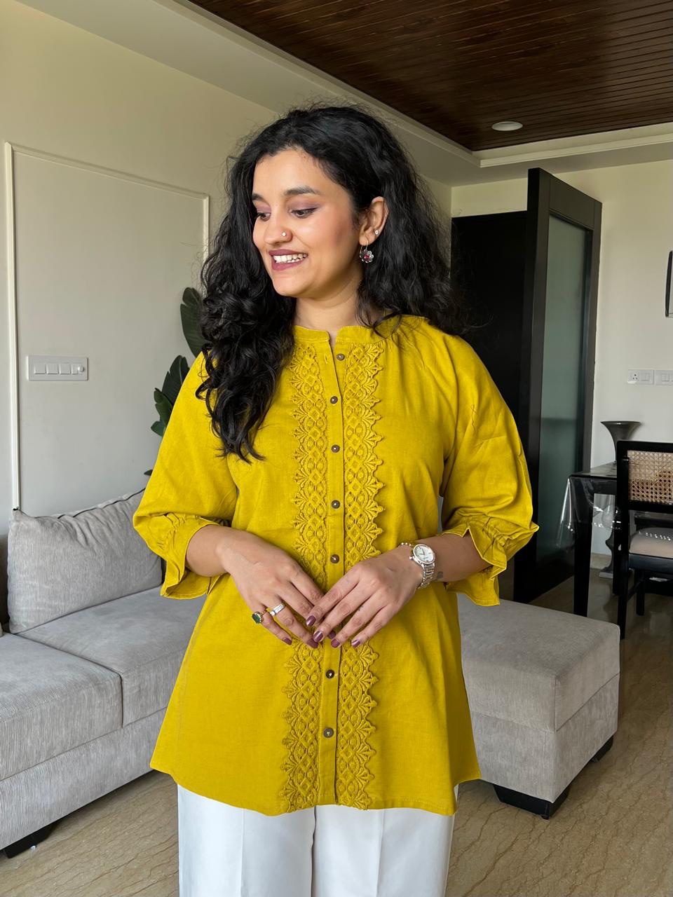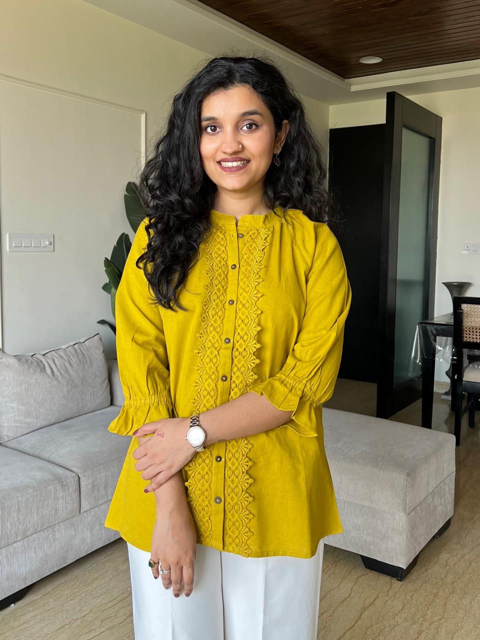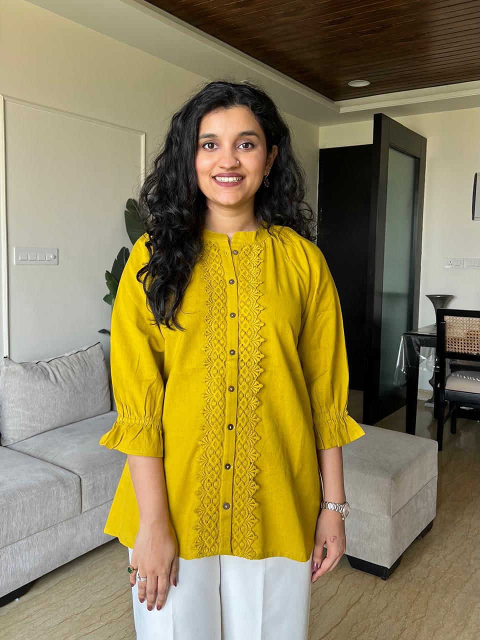 Tisha Cotton Statement Top- Yellow