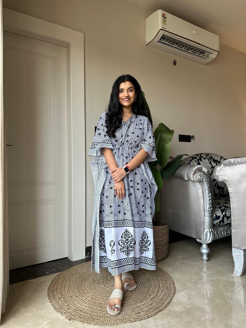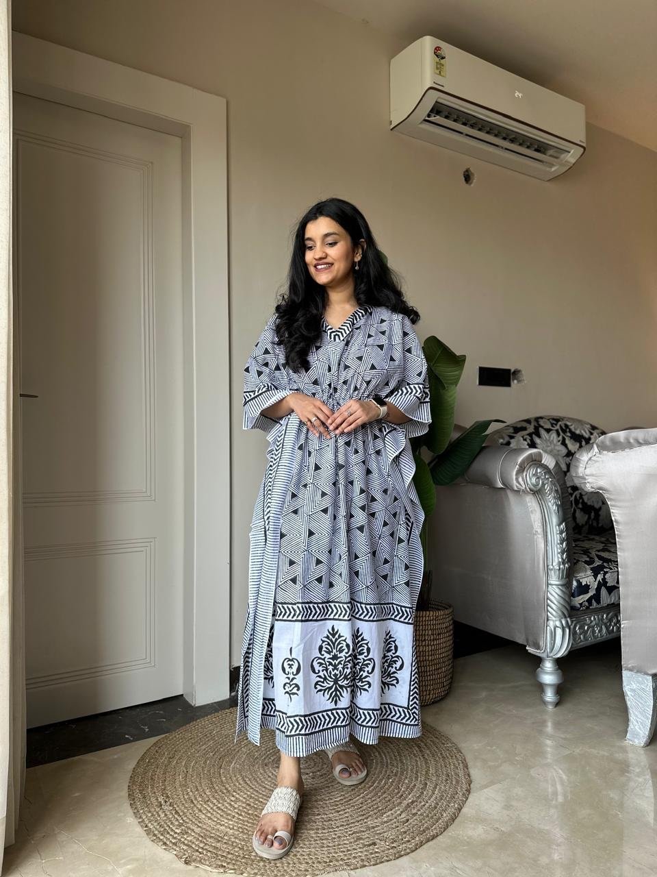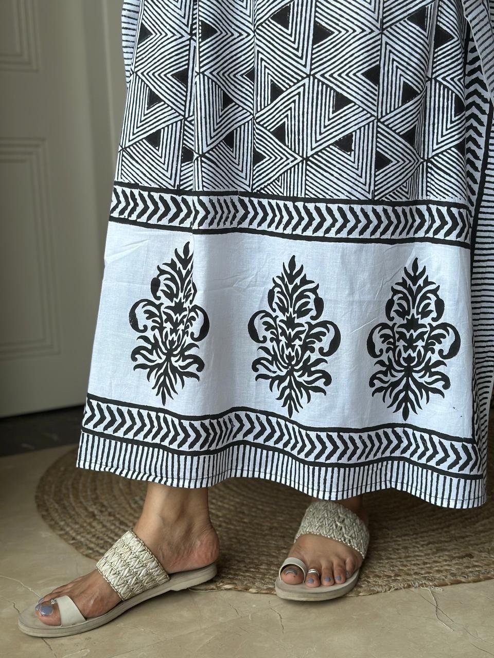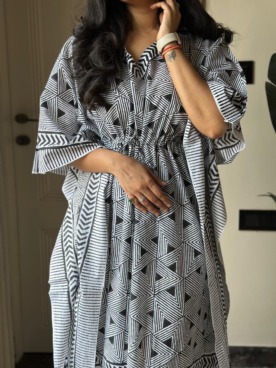 Zura Block Print Kaftan- Black and White