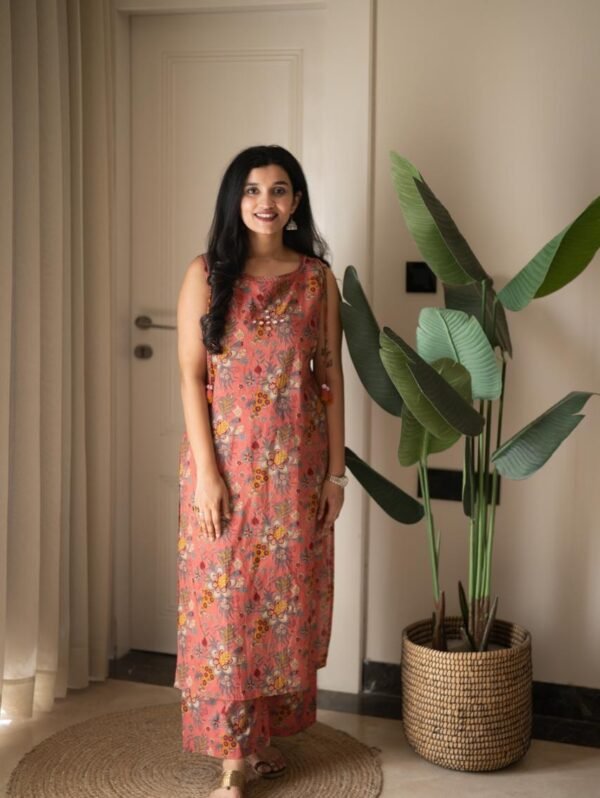 Kisha Sleeveless Cotton Set- Pink Floral