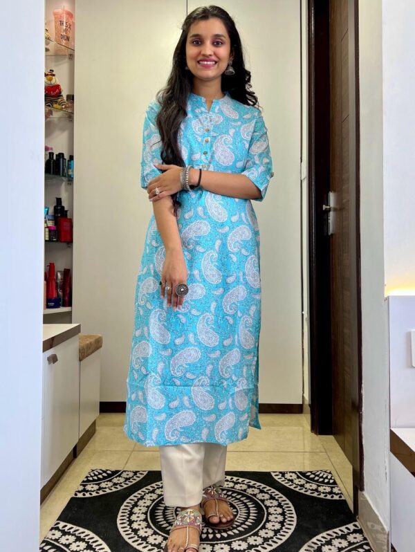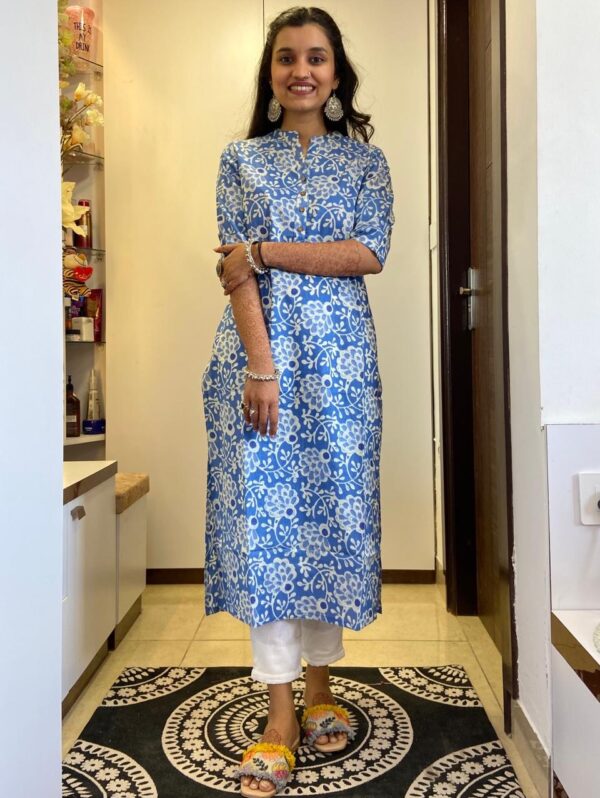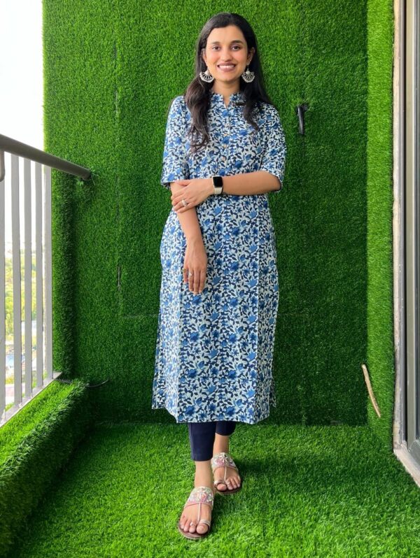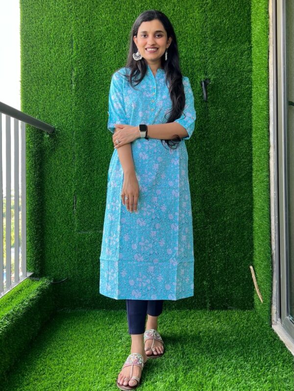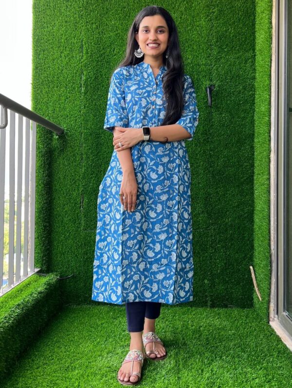 Weekend Cotton Kurta- Light Blue Floral Jaal