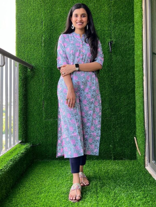 Weekend Cotton Kurta- Pastel Pink Big Floral