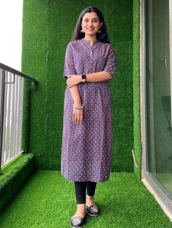 Weekend Cotton Kurta- Navy Red Booti Jaal