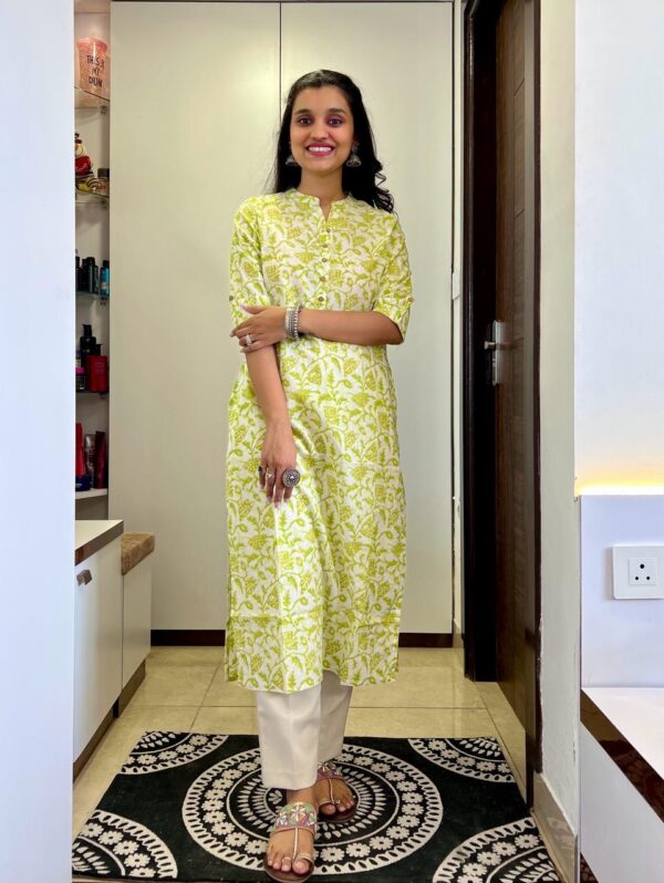Weekend Cotton Kurti- Pastel Green Big Floral