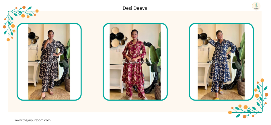 The easy elegance of floral print co-ord set for women is an important aspect of their popularity. Co-ord sets are ideal for those who wish to seem put together without having to put in a lot of work because they come pre-matched, in contrast with traditional outfits that call for meticulous pairing and coordination. For busy women who prefer to look stylish while on the go, they are ideal. Floral co-ord sets are quite popular nowadays, so make a statement with the floral co-ord set from The Jaipur Loom. Buy co-ord set for women online now!