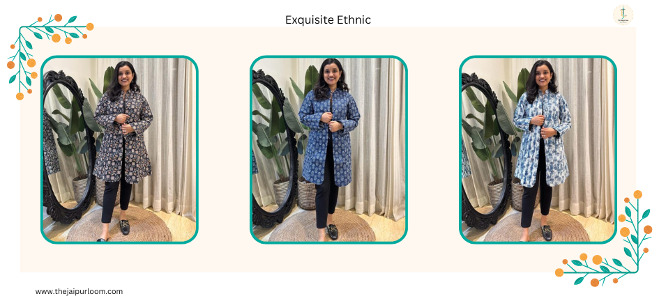 The goal of winter fashion is to be warm without compromising on elegance. Invest in elegant knitted co-ord sets in deep blues, grey, or black—all of which are classic winter hues. You may stay stylish and warm with a matching combination of pants or skirts and sweaters. On light summer days, a quilted reversible jacket goes well with the co-ord set; buy quilted jacket for women online from The Jaipur Loom.